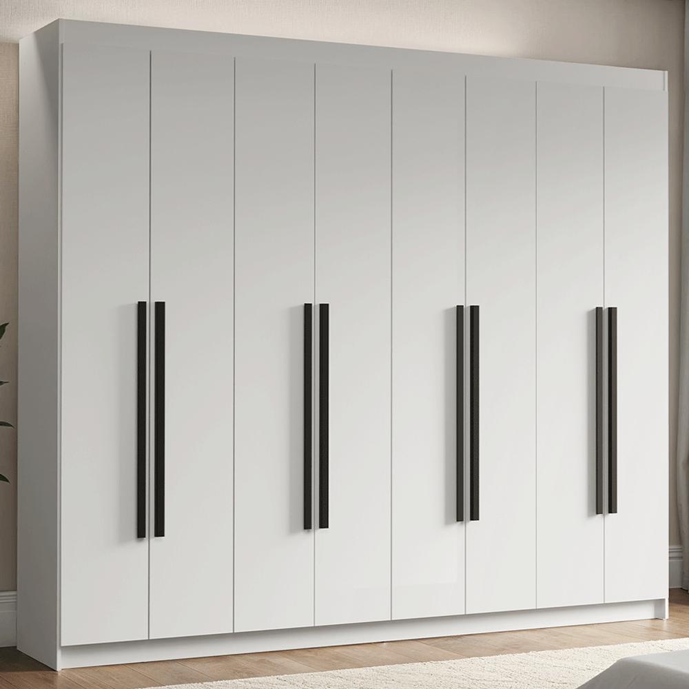 Guarda-Roupa Casal 8 Portas Batentes Branco/Branco/Preto Saturno Madesa