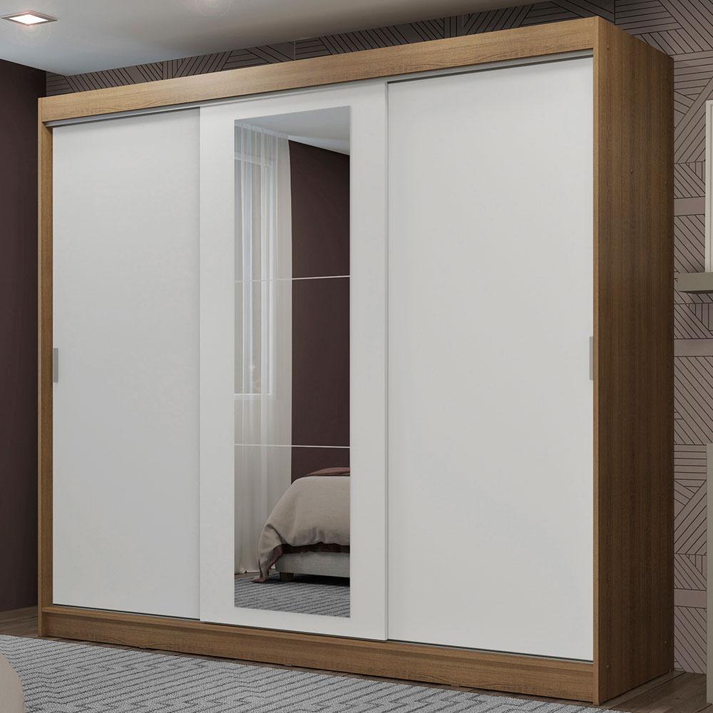 Guarda-Roupa Casal Madesa Reno 3 Portas de Correr de Espelho - Branco/Cinza