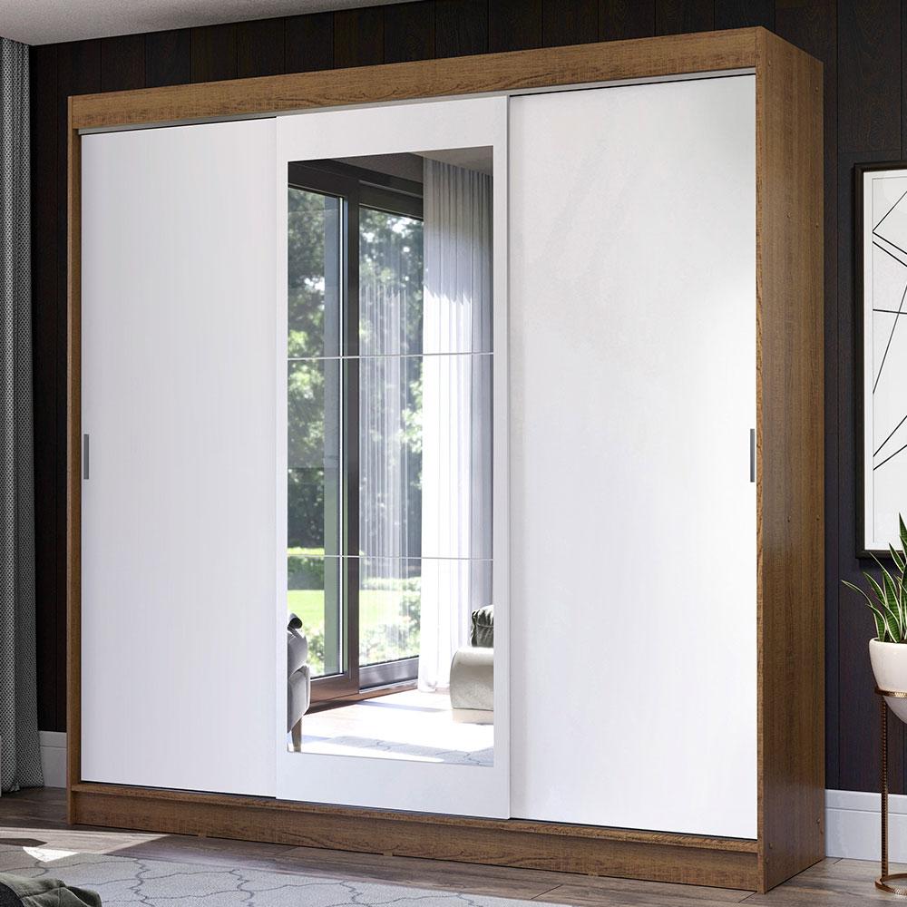 Guarda-Roupa Casal Madesa Istambul 3 Portas de Correr com Espelho 3 Gavetas - Rustic/Branco