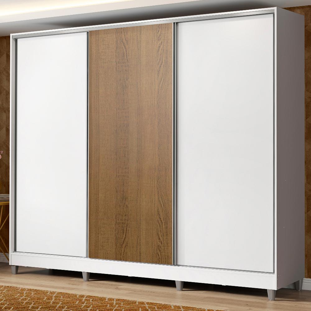Guarda Roupa Casal 100% MDF Madesa Zurique 3 Portas de Correr com Pés - Branco/Branco/Rustic