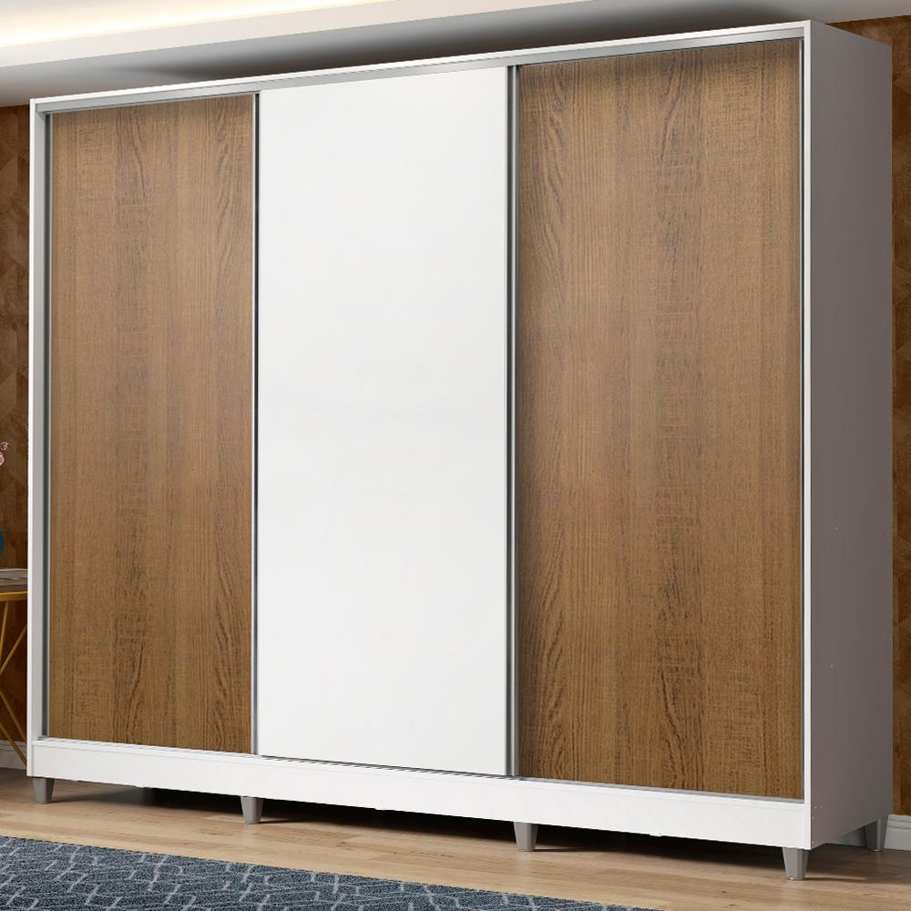 Guarda Roupa Casal 100% MDF Madesa Royale 3 Portas de Correr com Pés - Branco/Rustic/Branco