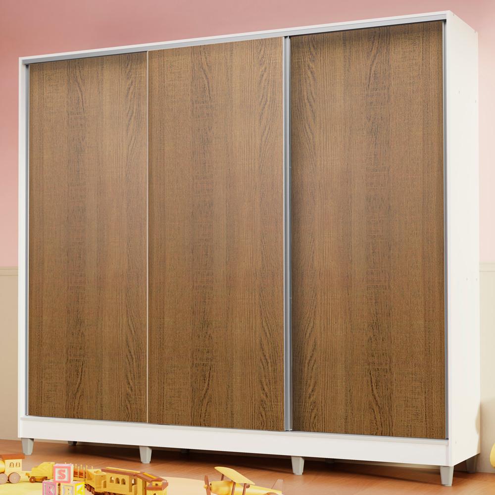 Guarda Roupa Infantil 100% MDF Madesa Logan 3 Portas de Correr com Pés - Branco/Branco/Rustic