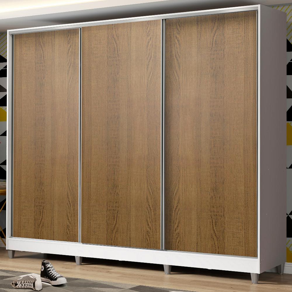 Guarda Roupa Juvenil 100% MDF Madesa Kevin 3 Portas de Correr com Pés - Branco/Rustic