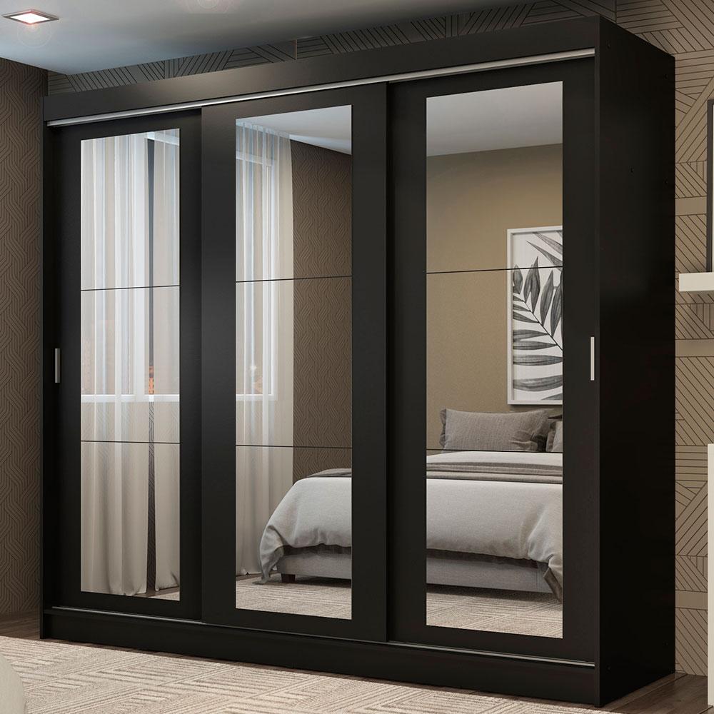 Guarda-Roupa Casal Madesa Istambul 3 Portas de Correr com Espelhos 3 Gavetas - Preto
