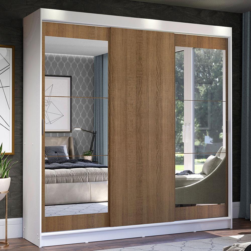 Guarda-Roupa Casal Madesa Istambul 3 Portas de Correr com Espelhos 3 Gavetas - Branco/Rustic