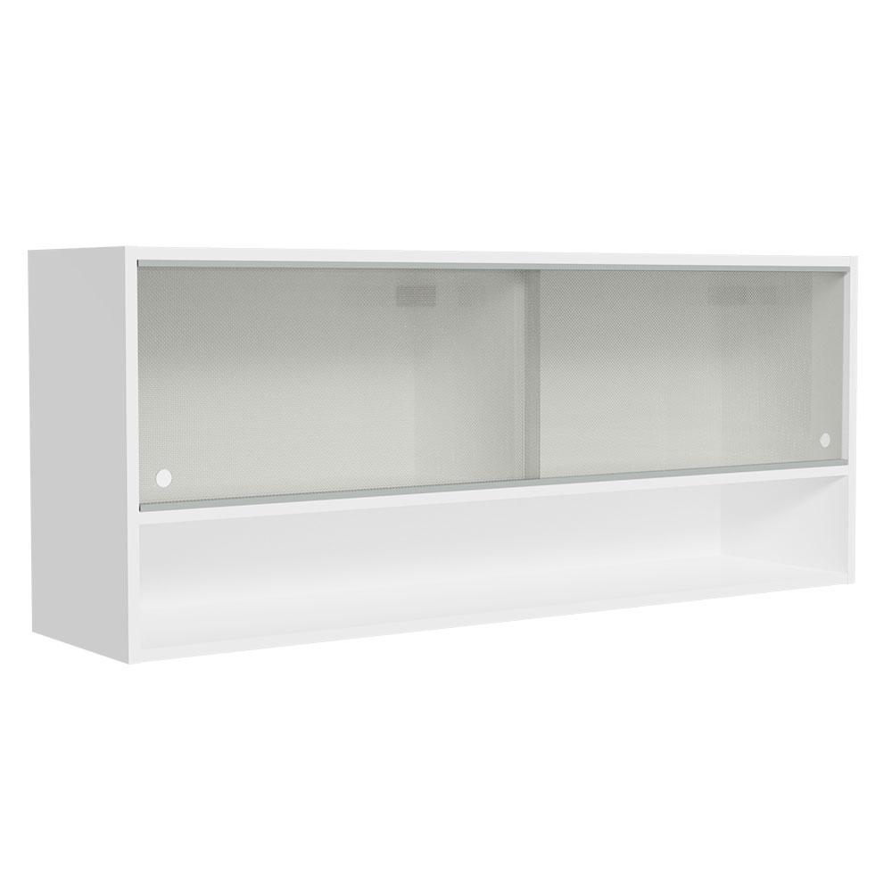 Armário Aéreo 120cm 2 Portas Correr Vidro Pontilhado 1 Nicho Branco para Cozinhas Glamy, Lux e Reims Madesa