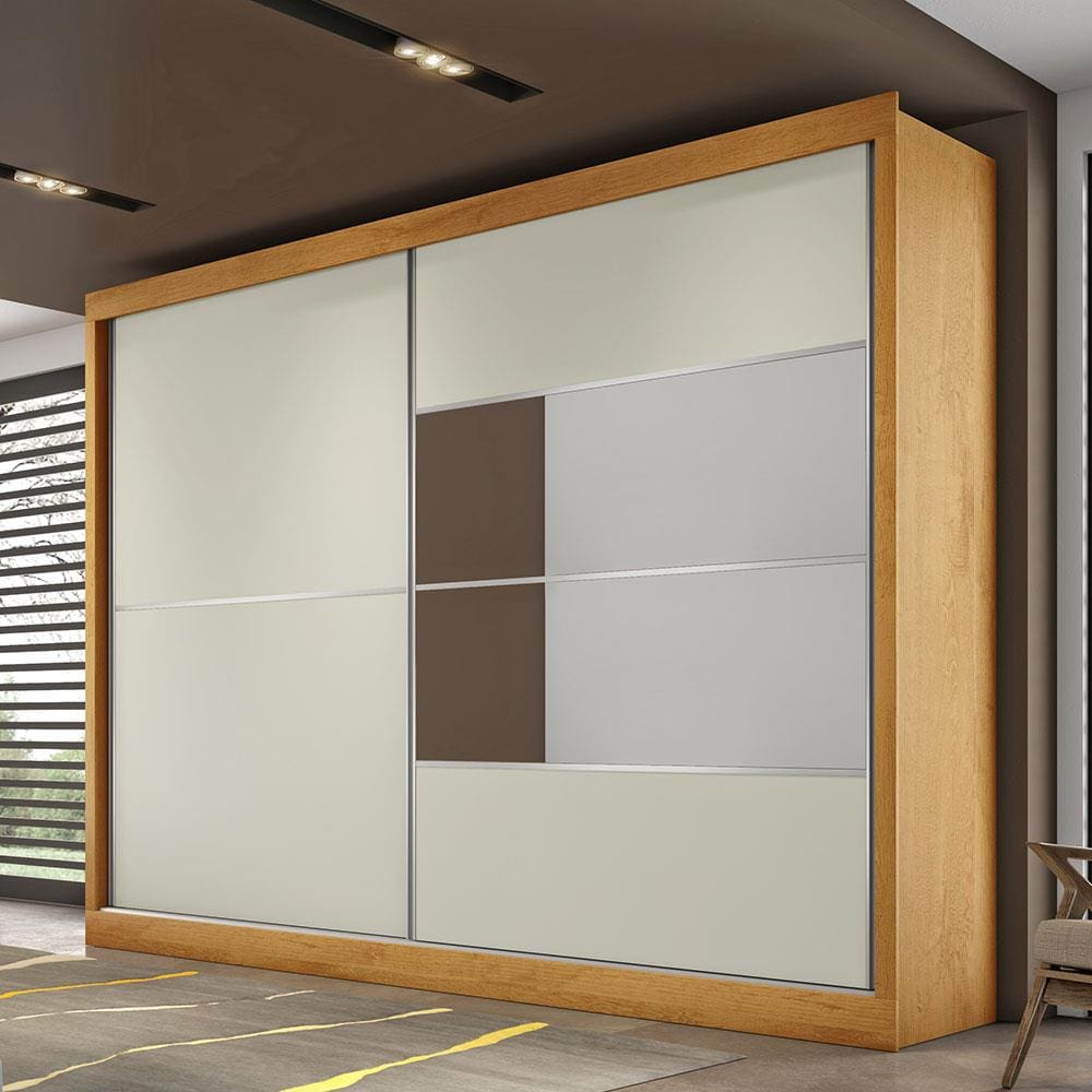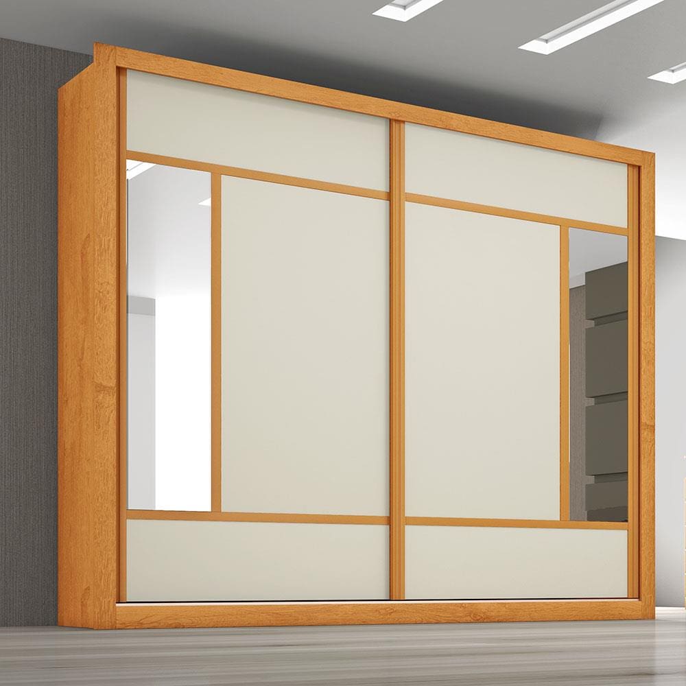 Guarda-Roupa Casal Móveis Europa Londres Flex com Espelho, 2 Portas de Correr e 4 Gavetas - 205cm de largura