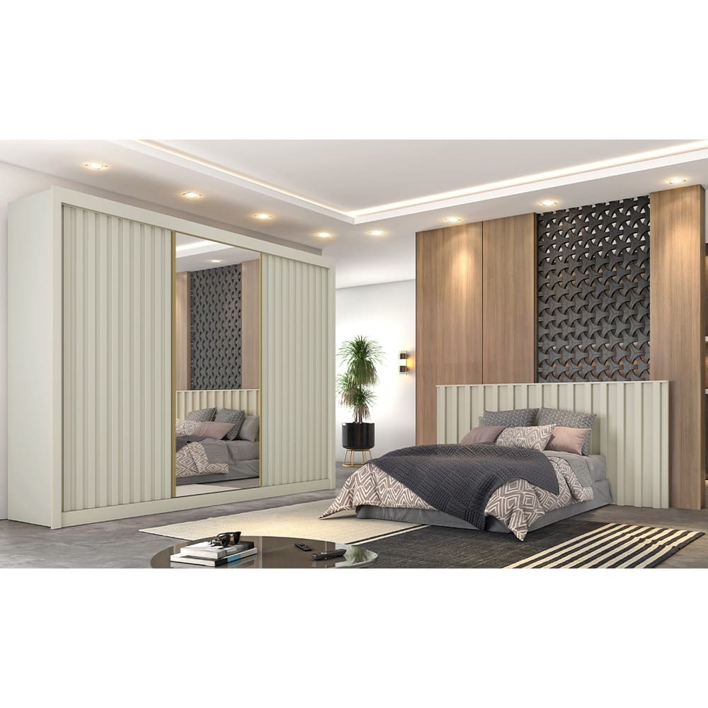 Guarda-Roupa Europa Grécia com espelho, 3 portas de correr, 6 gavetas e 12 prateleiras – 226 cm de largura
