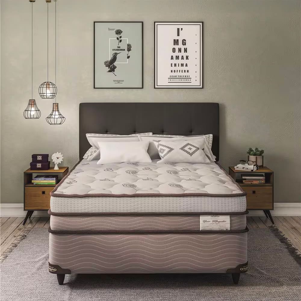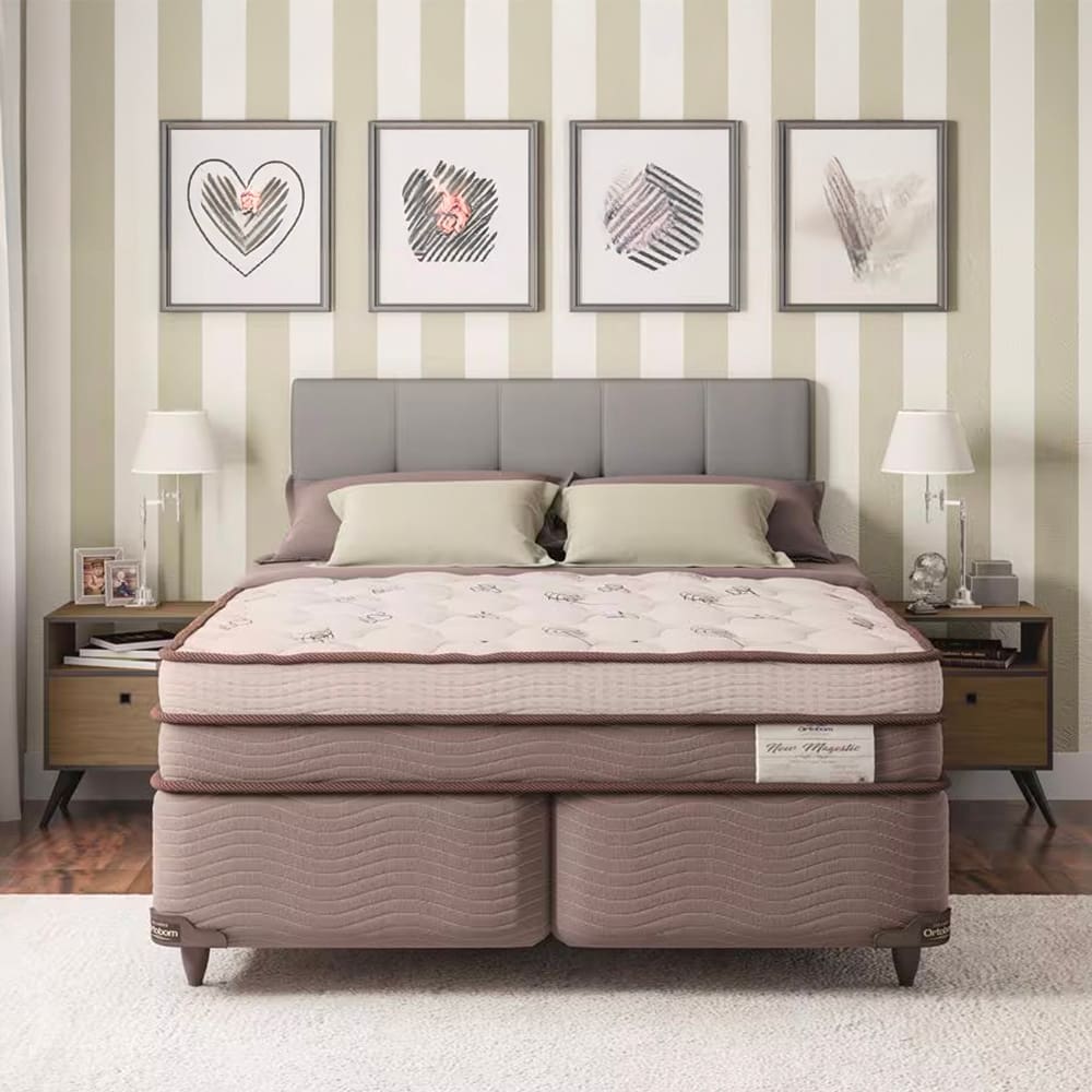 Cama Box de Casal Ortobom New Magestic com Molas Ensacadas 68x138x188 cm - Marrom/Cinza