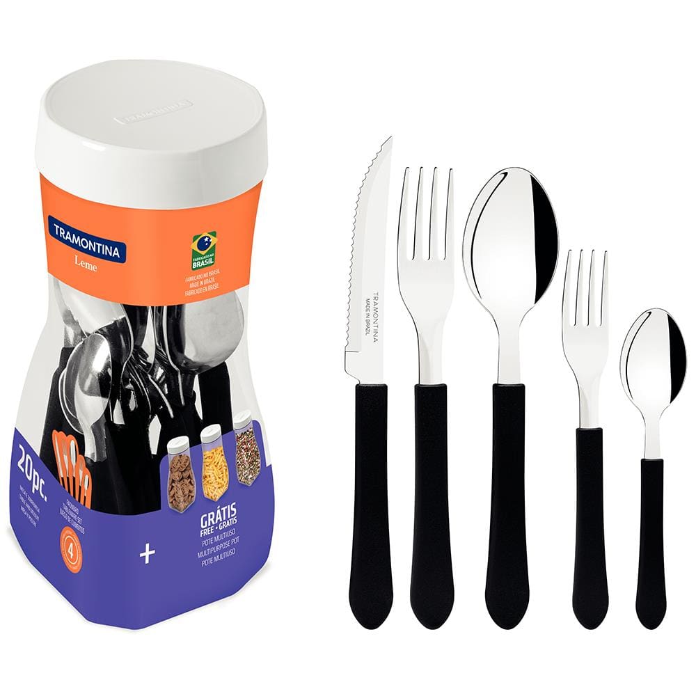 Faqueiro 20 Peças Tramontina Leme em Aço Inox e Polipropileno com Pote Multiuso – Preto