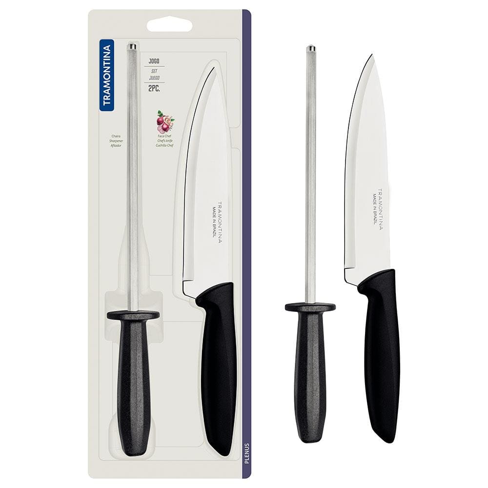 Conjunto Faca Chef e Chaira Tramontina Plenus Preto - 2 Peças