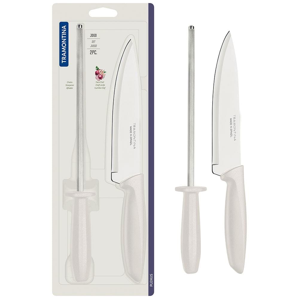 Conjunto Faca Chef e Chaira Tramontina Plenus Off-White - 2 Peças
