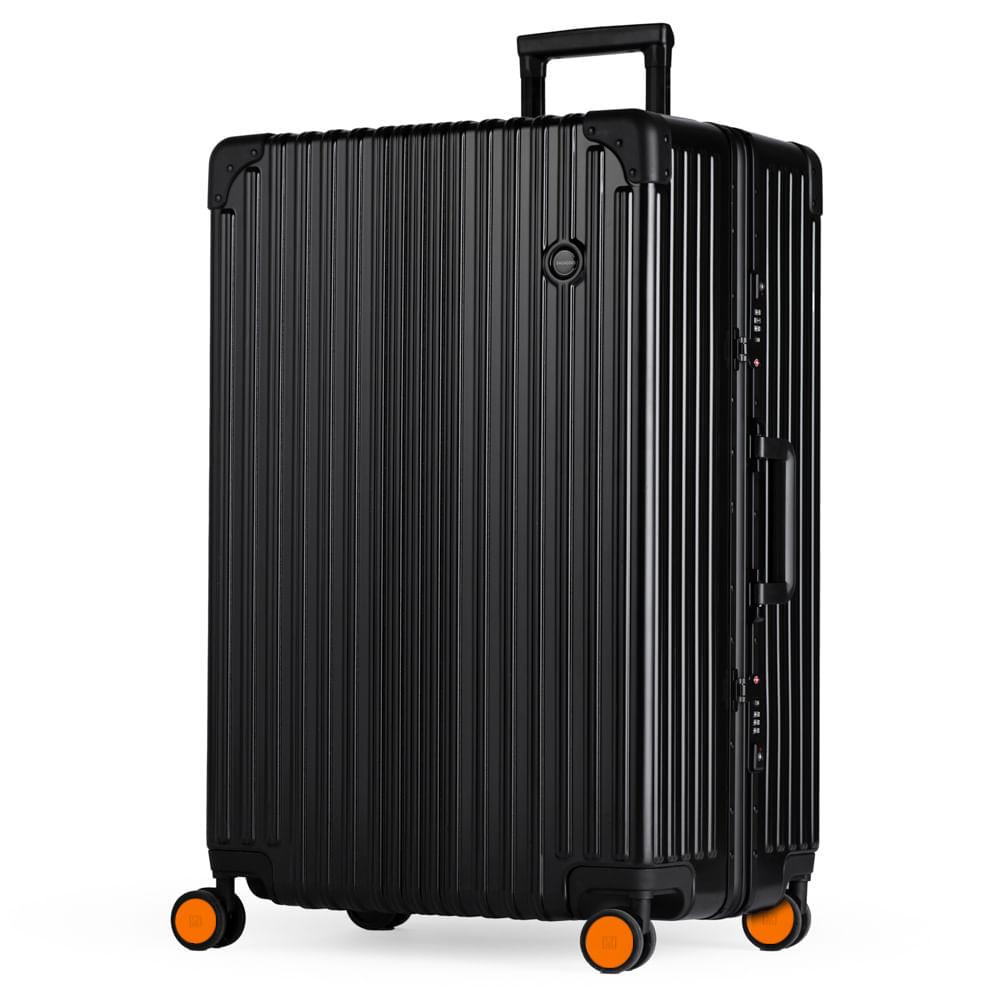 Mala Grande 32 kg de Policarbonato 4 Rodas Kyoto II Preta Rodinha Laranja