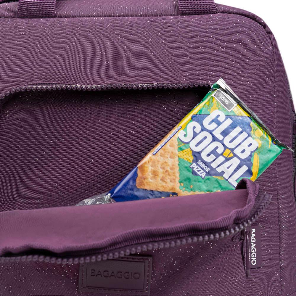 Lancheira Térmica Juvenil Feminina Crinkle Glitter Roxa0152560588001 A Lancheira Crinkle mantém seus alimentos frescos e saborosos enquanto você está na escola ou em qualquer lugar. Com um design prático e funcional, esta lancheira térmica oferece uma maneira divertida de levar suas refeições diárias. Tamanhos disponível: 20 x 26 x 13,5 cm Principais Atributos Alça Mão Com a Alça para mão é possível você carregar a lancheira com maior facilidade. Bolso Frontal A lancheira conta com um amplo bolso frontal externo para acomodar itens para fácil acesso. Proteção térmica Projetada para mantér a temperatura de seus alimentos e bebidas por muito mais tempo, a proteção térmica é ideal para quem tem um rotina agitada na rua e prefere carregar sua própria comida. Diferenciais Alça transversal Conta com alça transversal, sendo possível carregar a lancheira no ombro, com maior facilidade.p> Bagaggio responde Essa lancheira da Bagaggio tem garantia? Sim, a lancheira conta com 90 dias de garantia para defeitos de fábrica. Qual litragem essa lancheira comporta? A lancheira comporta até 7L. Quanto pesa esta lancheira? A lancheira conta com um peso de 200g.