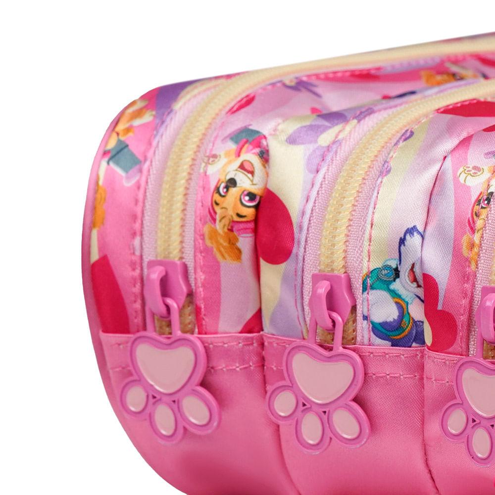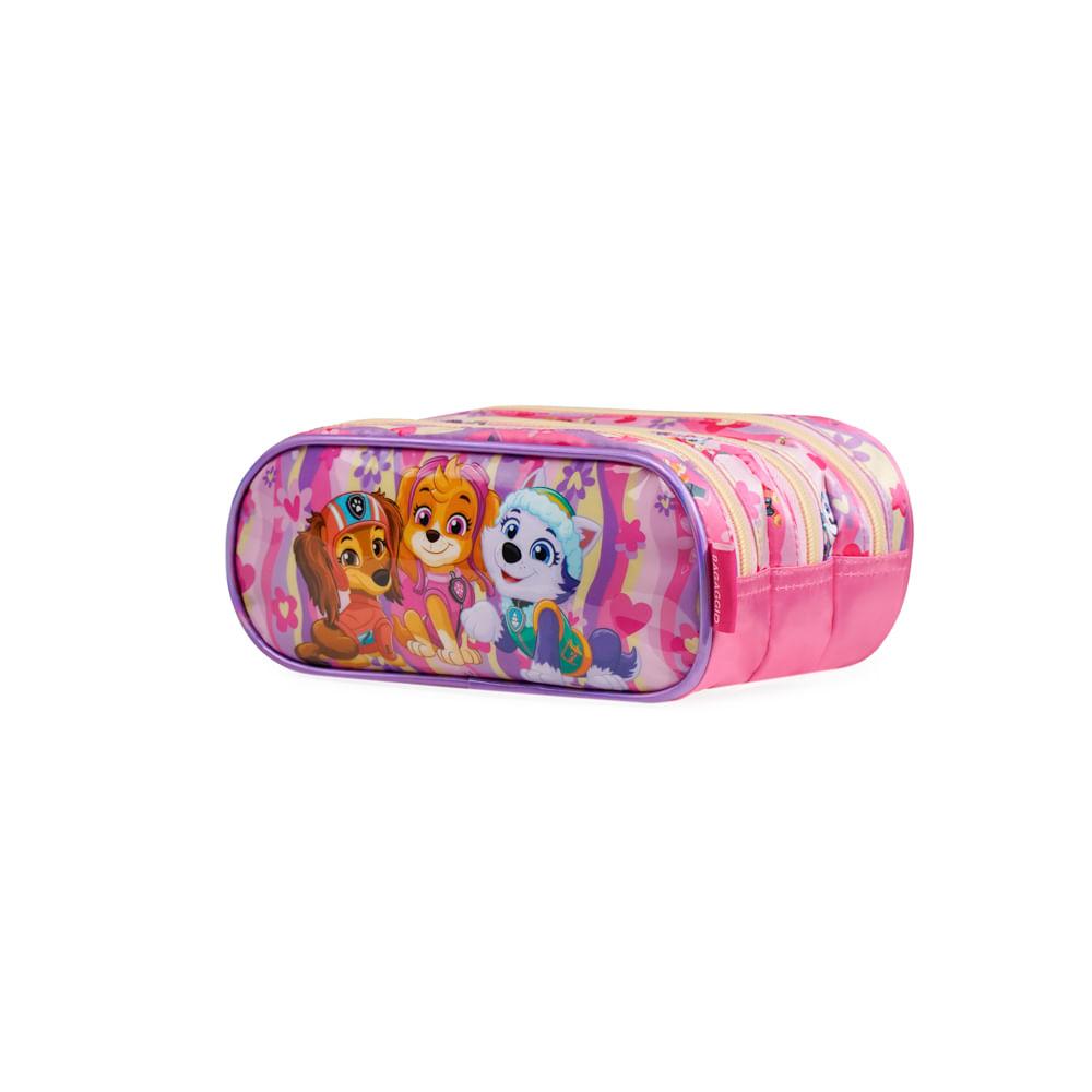 O Estojo Escolar Feminino Skye 3 Compartimentos Rosa é a escolha certa para quem busca organização de verdade na rotina escolar com o visual divertido da Patrulha Canina. Com 3 compartimentos separados, ele permite distribuir lápis, canetas, marcadores, borrachas e pequenos acessórios de forma prática e fácil de acessar. O painel frontal traz as personagens em destaque com estampa personalizada, criando um estojo que combina funcionalidade real com um visual que as crianças adoram.Dentro do mix Bagaggio, o grande diferencial deste modelo é ser um estojo espaçoso com três zíperes independentes, oferecendo mais divisão interna do que os estojos escolares tradicionais — ideal para quem usa vários materiais no dia a dia.Organização e Espaço InternoOs 3 compartimentos ajudam a manter tudo no lugar: um espaço para lápis e canetas, outro para marca-textos e canetinhas, e um terceiro para itens menores como borracha, régua, apontador ou tesourinha. A abertura ampla permite visualizar tudo rapidamente, reduzindo bagunça e tornando a rotina mais prática.Praticidade na Rotina EscolarO formato estruturado do estojo facilita colocar e remover os itens sem esforço. Os zíperes deslizam com facilidade, mesmo no uso diário intenso. É o modelo ideal para crianças que levam materiais diferentes para várias atividades — da aula regular aos momentos de arte, desenho ou reforço.Design exclusivo e detalhes especiaisO destaque visual está no painel personalizado com as personagens femininas da Patrulha Canina — Skye, Everest e Liberty — em cores vibrantes que não desbotam. A estampa lateral completa o visual, deixando o estojo ainda mais divertido. A promessa central deste modelo é entregar organização, durabilidade e um design que combina com a personalidade das crianças.FAQCabe bastante material?Sim! Os 3 compartimentos comportam lápis, canetas, marcadores e acessórios sem aperto.Os zíperes são resistentes?Sim. Todos os zíperes foram desenvolvidos para o uso diário escolar.O painel frontal é brilhante?É sim — o painel tem acabamento especial que deixa as personagens em destaque.Esse modelo é bom para crianças pequenas?Ótimo. Ele é fácil de abrir, leve e muito intuitivo de usar.O estojo combina com a mochila e lancheira Skye?Sim — faz parte da mesma linha e forma o kit escolar completo.Material: PoliésterTamanho:9 x 22 x 12 cmPeso: 0,13kgCapacidade: 2,3LGarantia: 90 diasFaixa etária: Infantil (3 a 8 anos)Outros atributos: - Zíper Personalizado.-  3 compartimentos amplo.