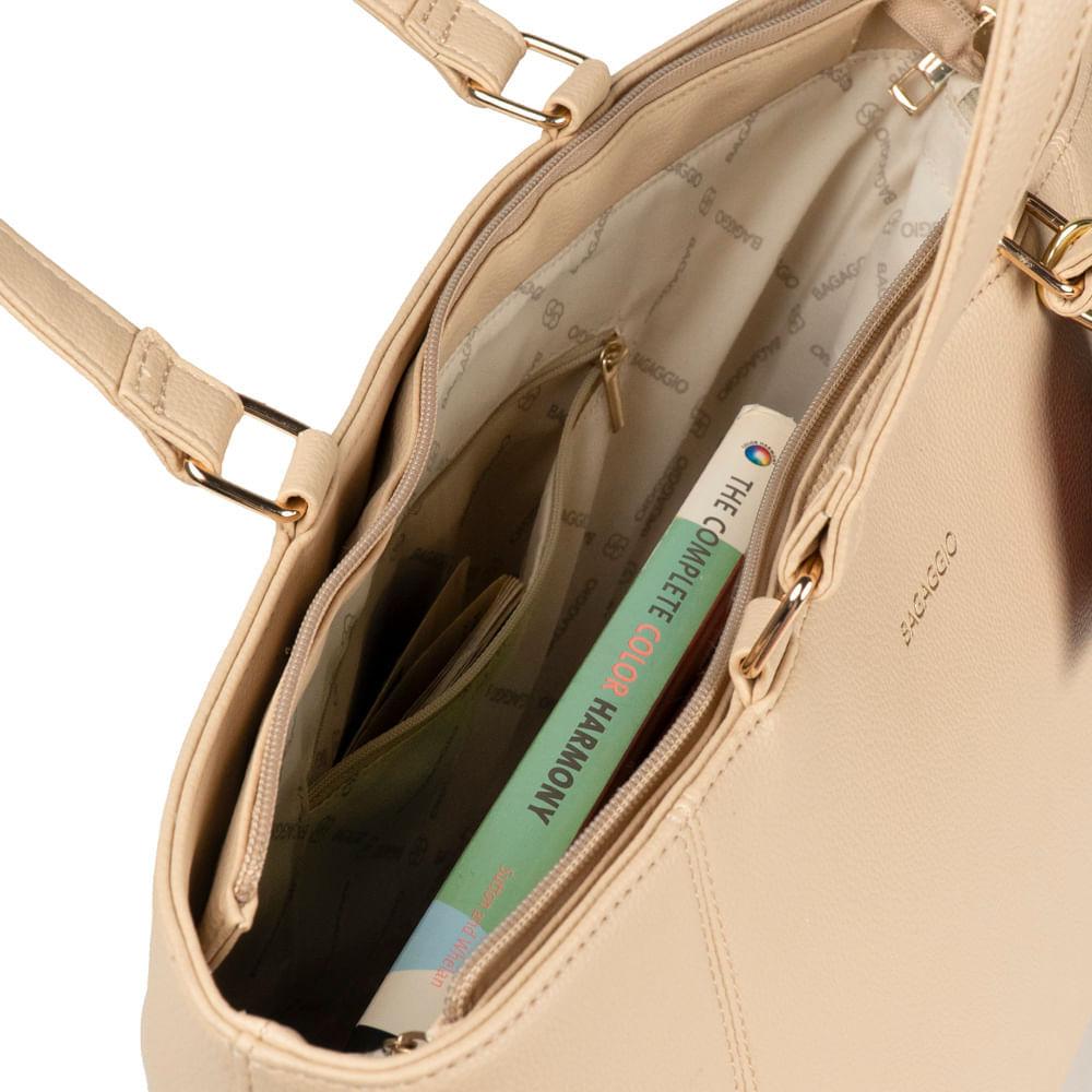 A Bolsa de Ombro Tote Bg Amour Bege é a combinação ideal entre elegância e funcionalidade. Confeccionada em material sintético premium, possui textura macia e estrutura reforçada que garante durabilidade e um visual sofisticado. Com amplo espaço interno, divisórias organizadoras e bolso externo com zíper, ela é perfeita para o dia a dia, comportando livros, garrafinha e outros essenciais.O design é complementado por ferragens douradas e um charmoso pingente em formato de coração bicolor, que adiciona um toque moderno e romântico. Ideal para quem busca praticidade sem abrir mão de estilo.Acessórios Removíveis: Acessórios removíveis A mochila conta com acessórios personalizados removíveis.Especificações: Material: PVC Peso (kg): 0,540 KgDimensões: 29 x 43 x 14 CmCapacidade: 17,4 LCor: Bege Marca: Bagaggio Faixa Etária: Adulto Outros atributos:- Compartimento principal espaçoso.- Acessório removível.