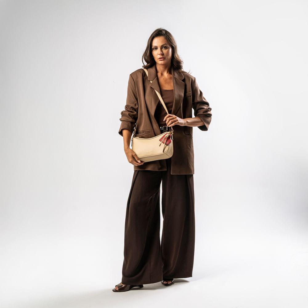 A Bolsa Transversal Feminina BG Amour Bege combina elegância e funcionalidade em um design contemporâneo de formato meia-lua, perfeito para quem ama estilo e praticidade.Produzida em material sintético premium, possui textura suave, ferragens douradas e um delicado pingente de coração bicolor, que traz um toque romântico.A alça regulável e removível permite diferentes formas de uso: transversal ou a tiracolo, enquanto o espaço interno funcional garante organização no dia a dia.Especificações: Material: PVC Peso (kg): 0,450 KgDimensões: 15,5 x 26 x 9 cmCapacidade: 3,6 LCor: BegeMarca: Bagaggio Faixa Etária: Adulto Outros atributos:- Compartimento principal espaçoso.- Acessório removível.