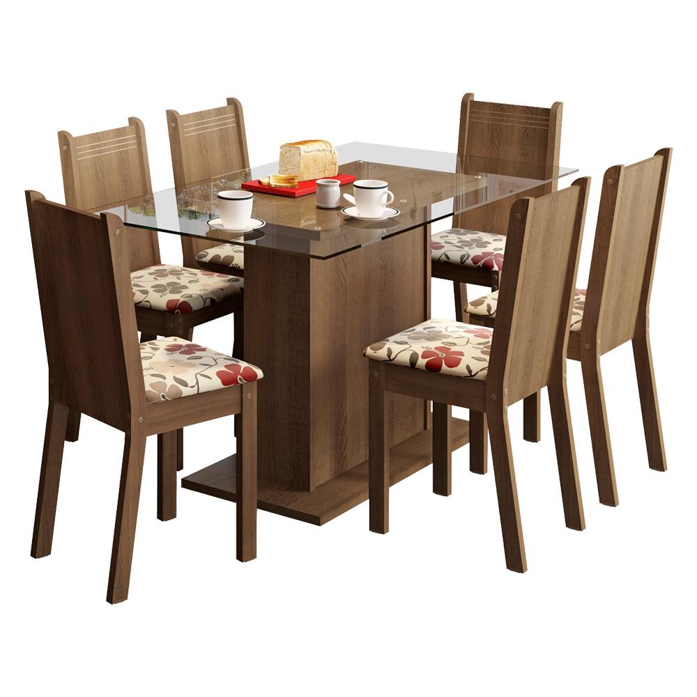 Conjunto Sala de Jantar Madesa Gales Mesa Tampo de Vidro com 6 Cadeiras - Rustic/Floral Hibiscos