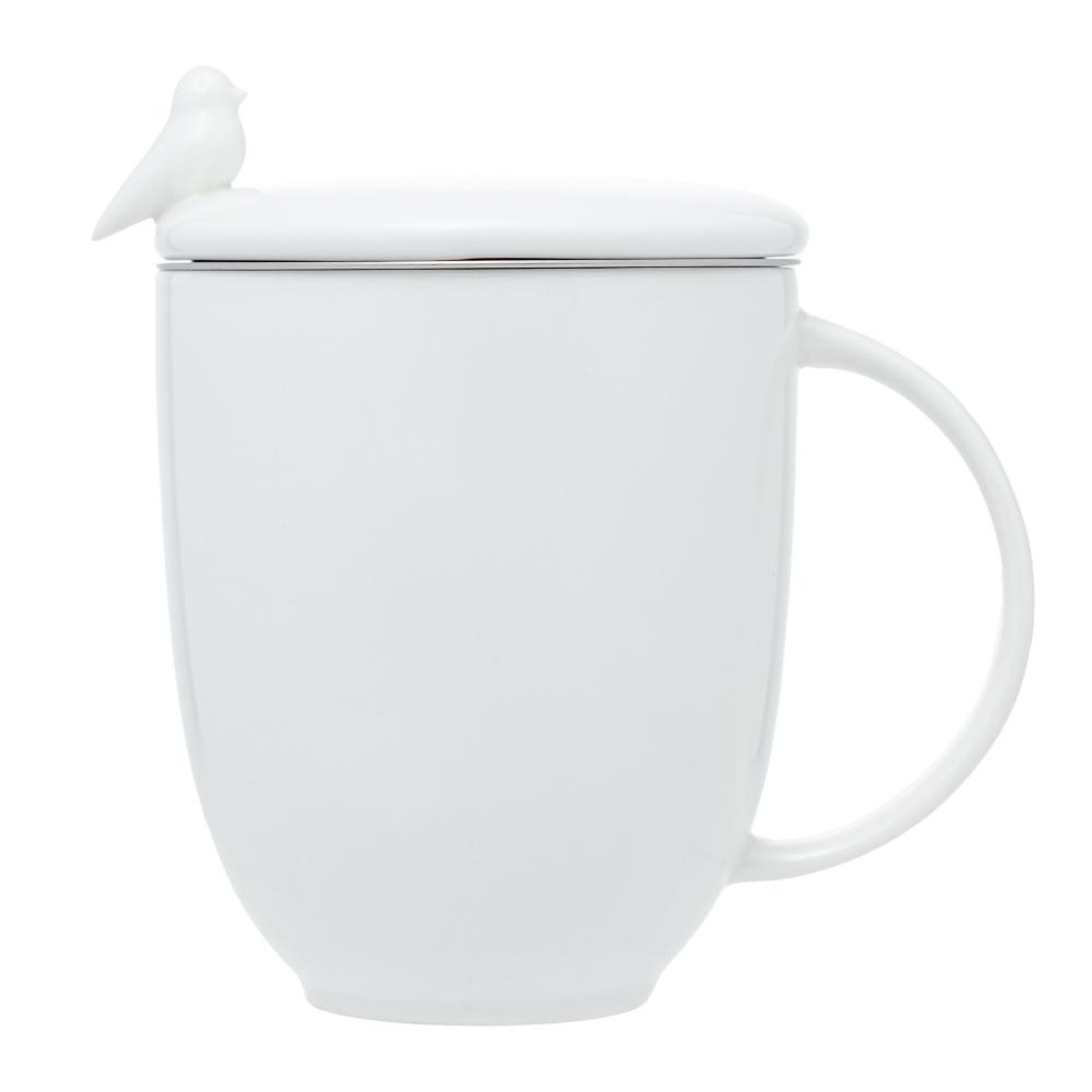 Caneca Wolff Birds de Porcelana com Infusor Branco 350ml