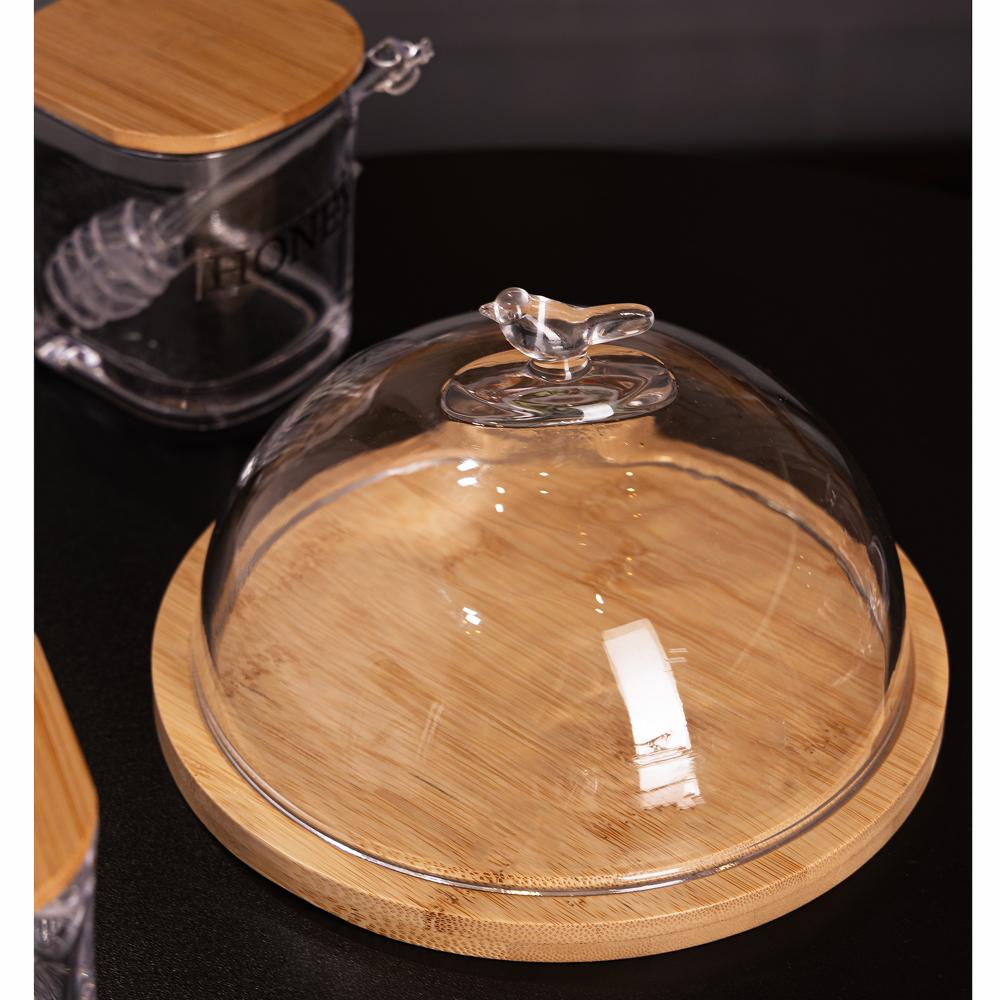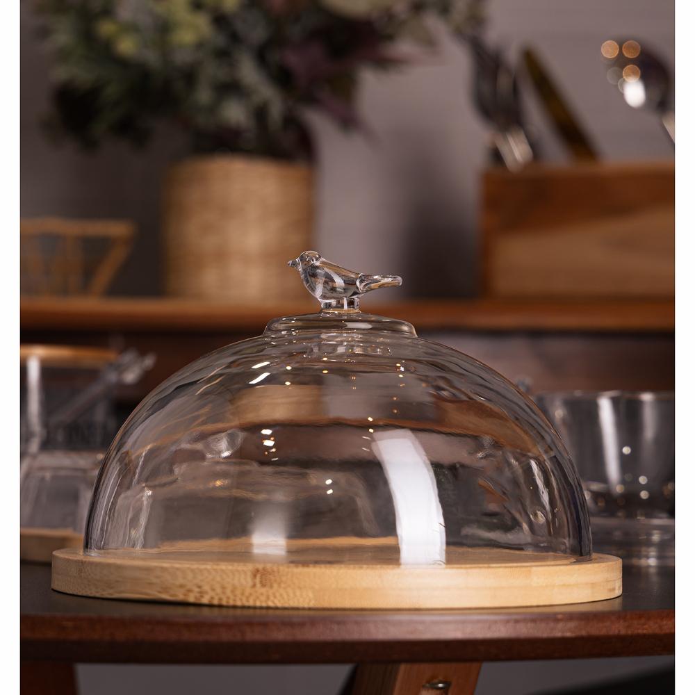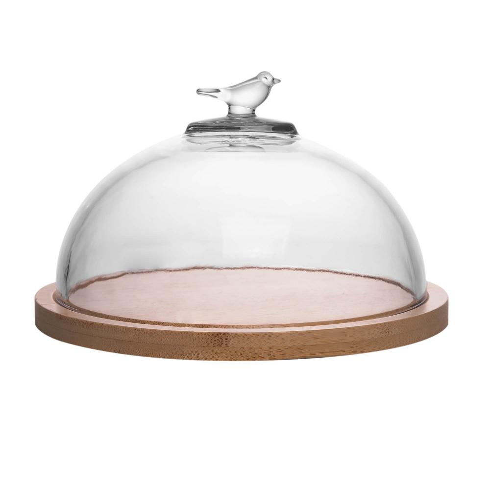 Queijeira com Base em Bambu Wolff Bird com Tampa Vidro