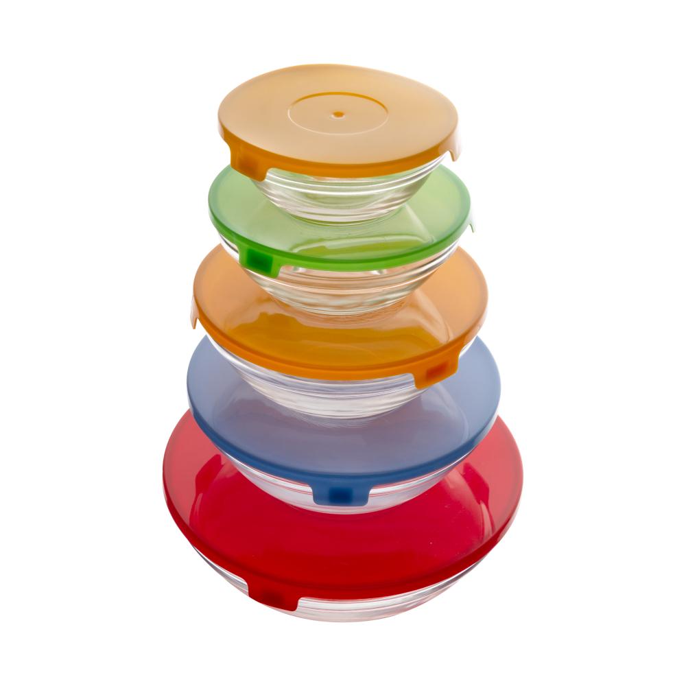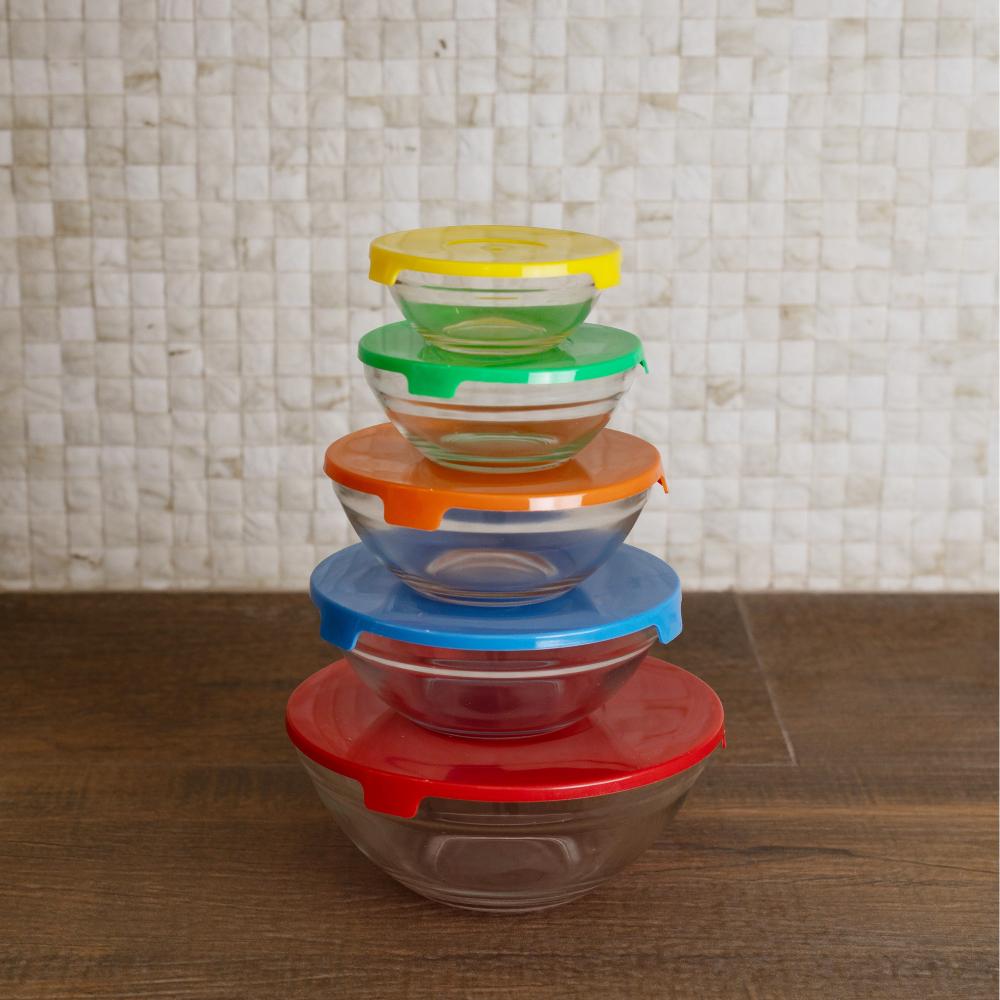 5 Tigelas Lyor de Vidro com Tampa de Plástico