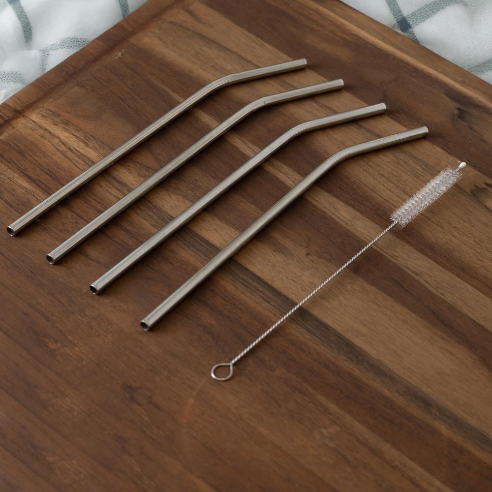4 Canudos de Aço Inox Reutilizáveis com Escova para Limpeza