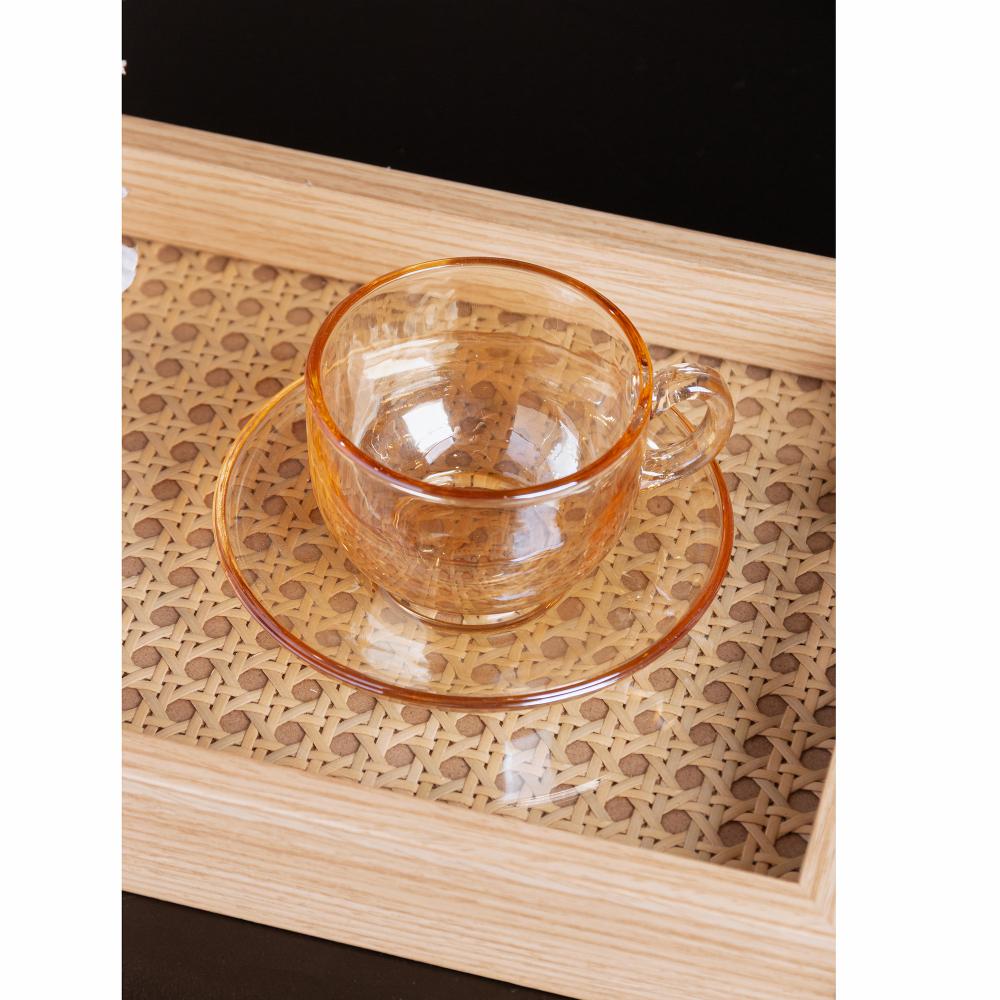 Xícara de Chá com Pires Lyor Nice 150ml Âmbar Vidro