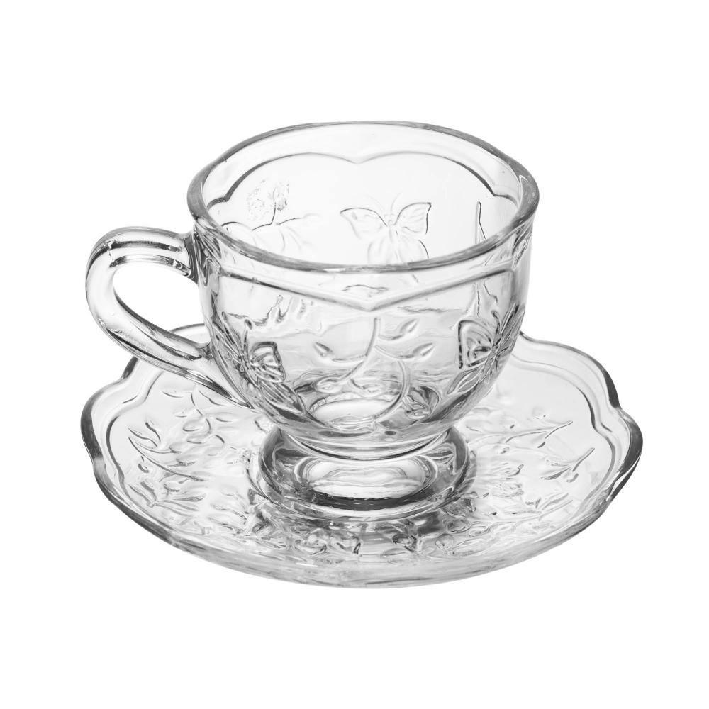 Xícara de Chá com Pires Lyor New Butterfly Cristal 180ml