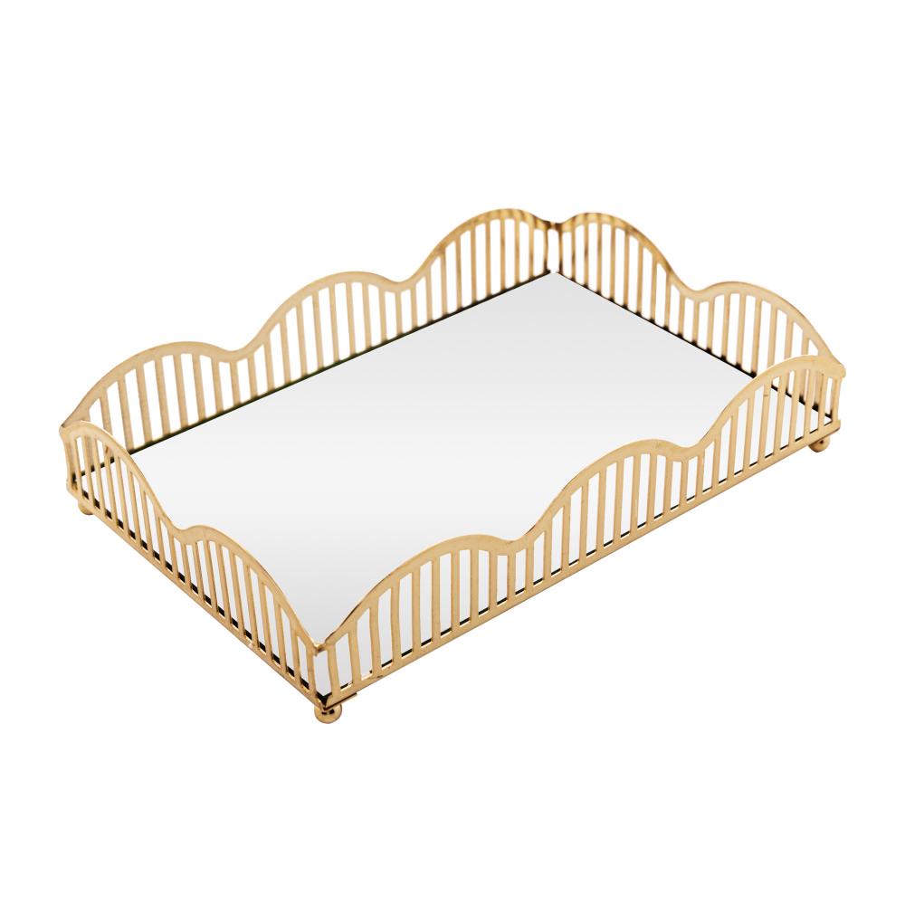 Bandeja com Espelho Lyor Wave 21cm x 14cm x 4cm Dourada