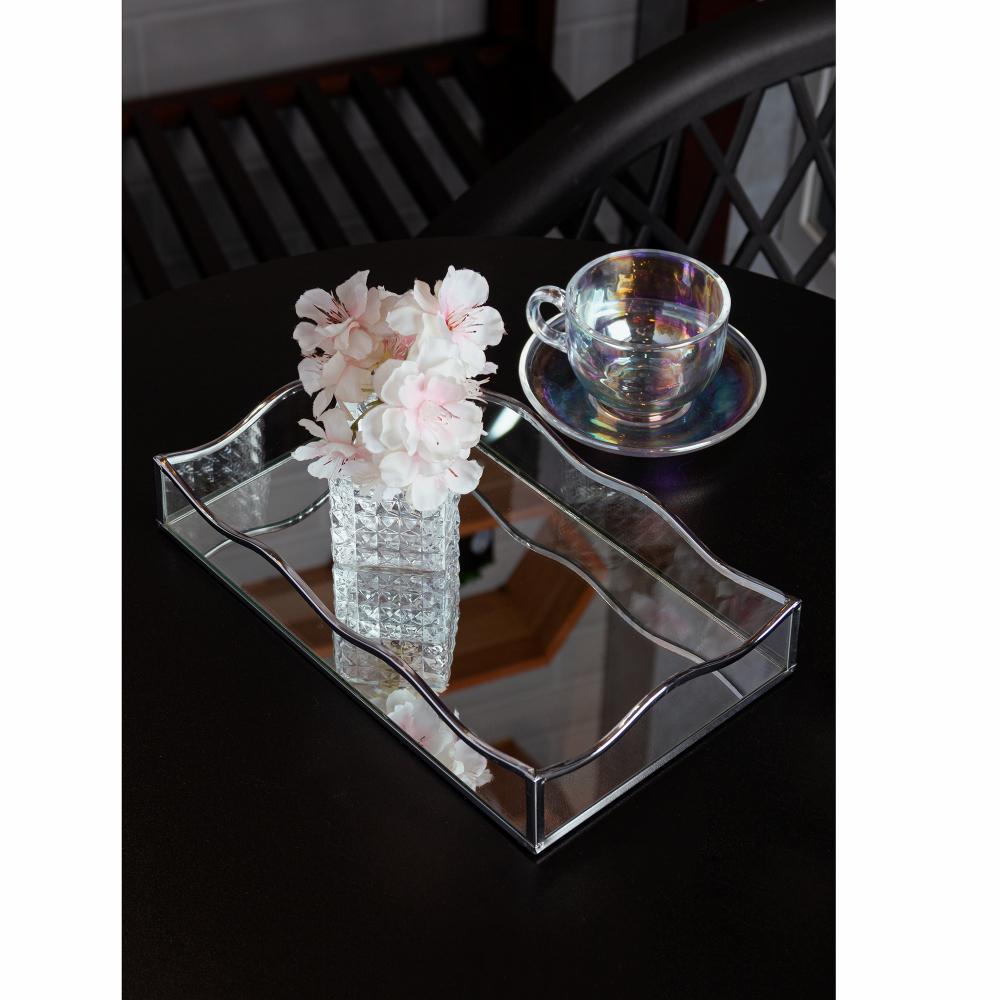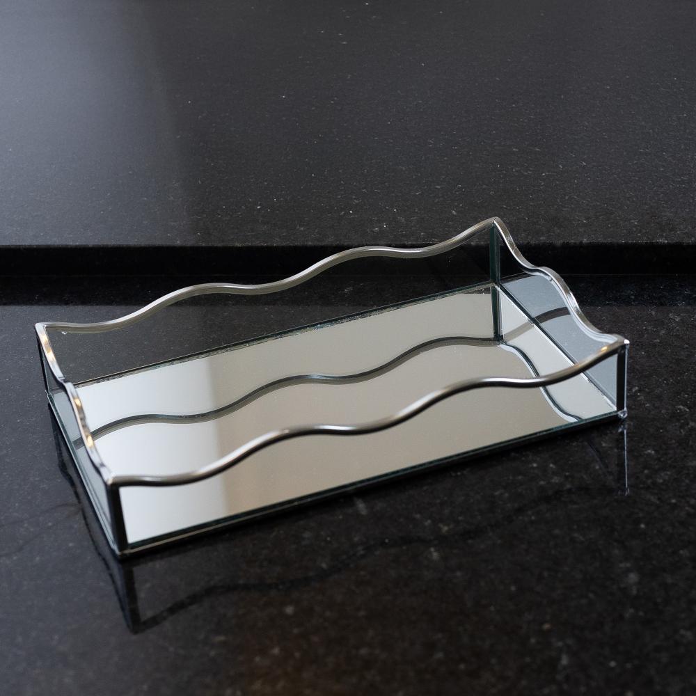 Bandeja com Espelho Lyor Ocean 15cm x 25cm x 4cm Prateada