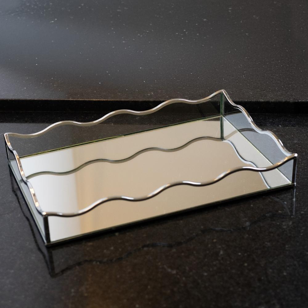 Bandeja com Espelho Lyor Ocean 20cm x 30cm x 4cm Prateada