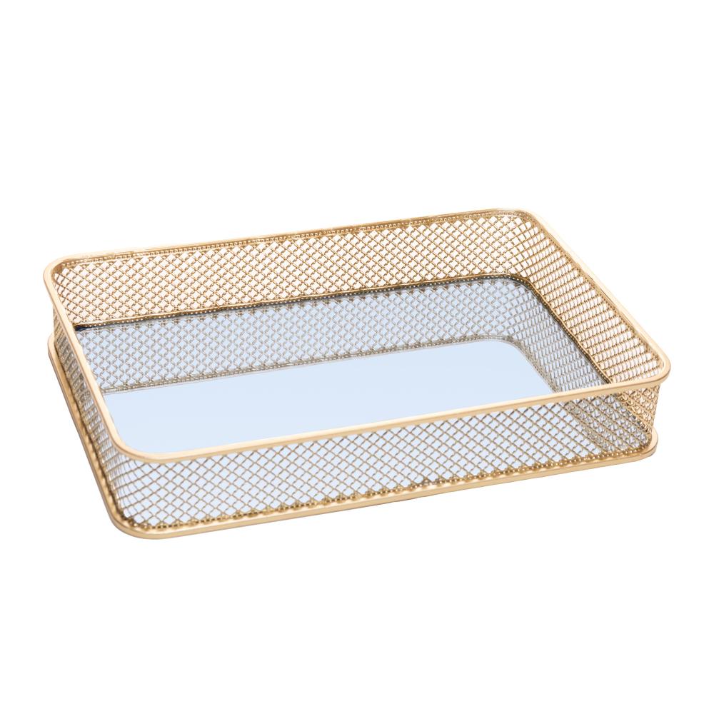 Bandeja com Espelho Elise 31cm x 21cm x 5cm Dourada Metal