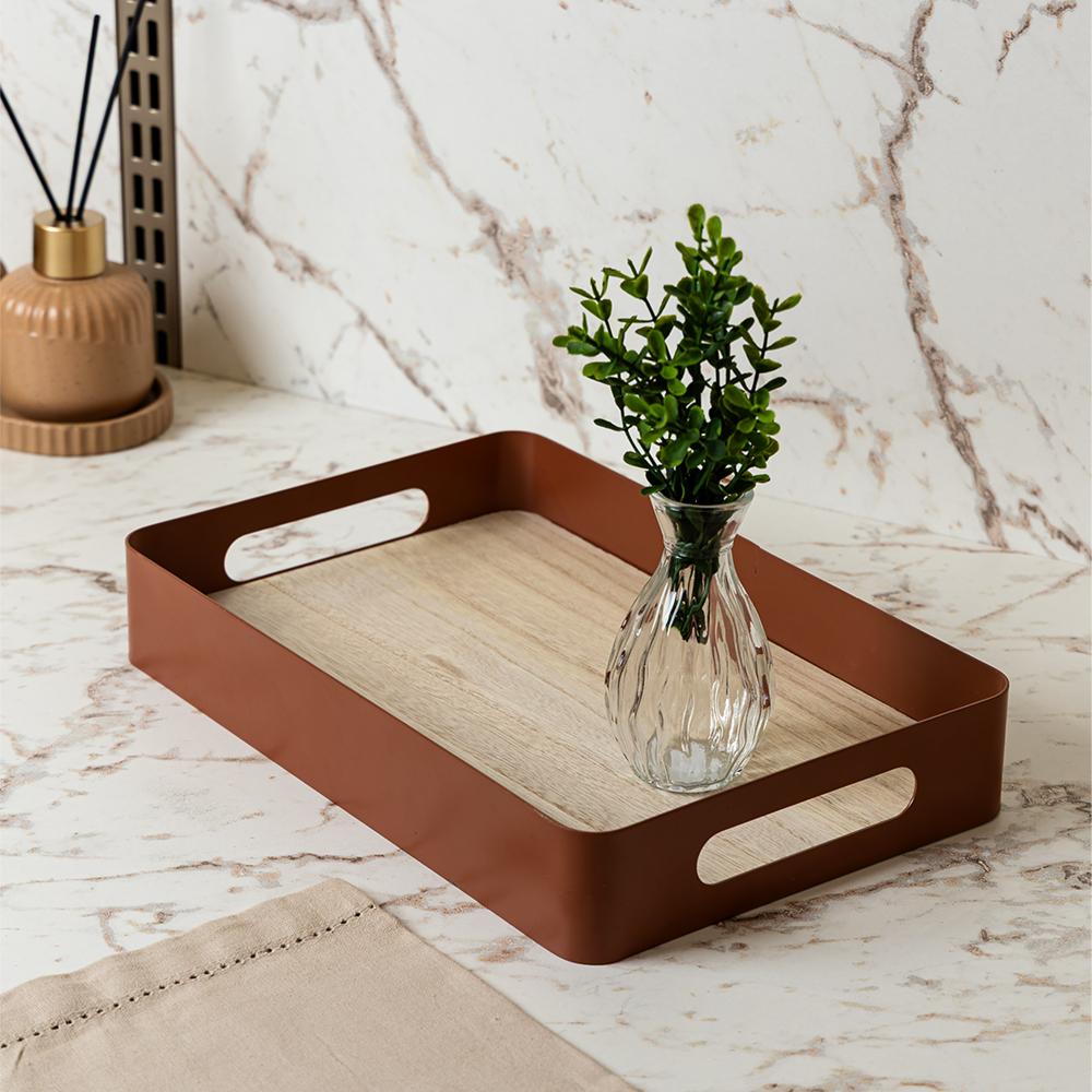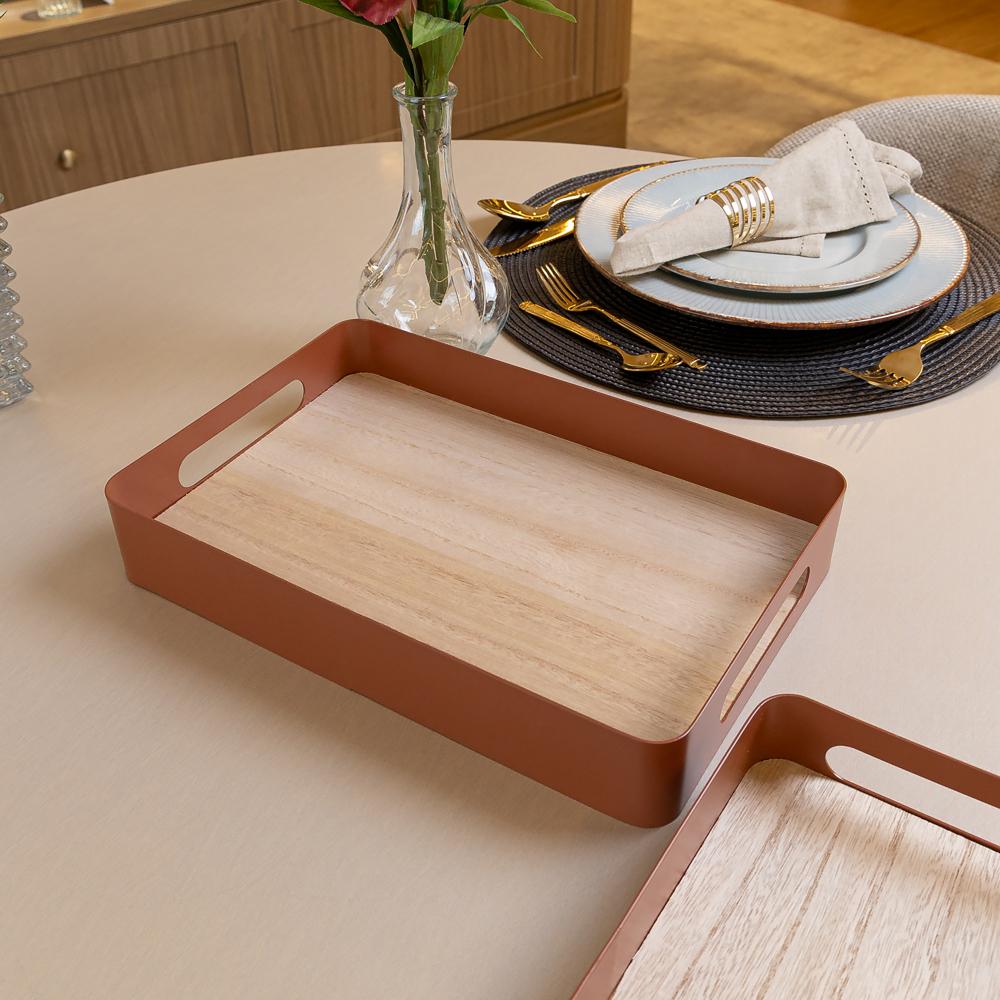 Bandeja Fundo de Madeira Virelli 30 x 20 x 5cm Marrom Metal