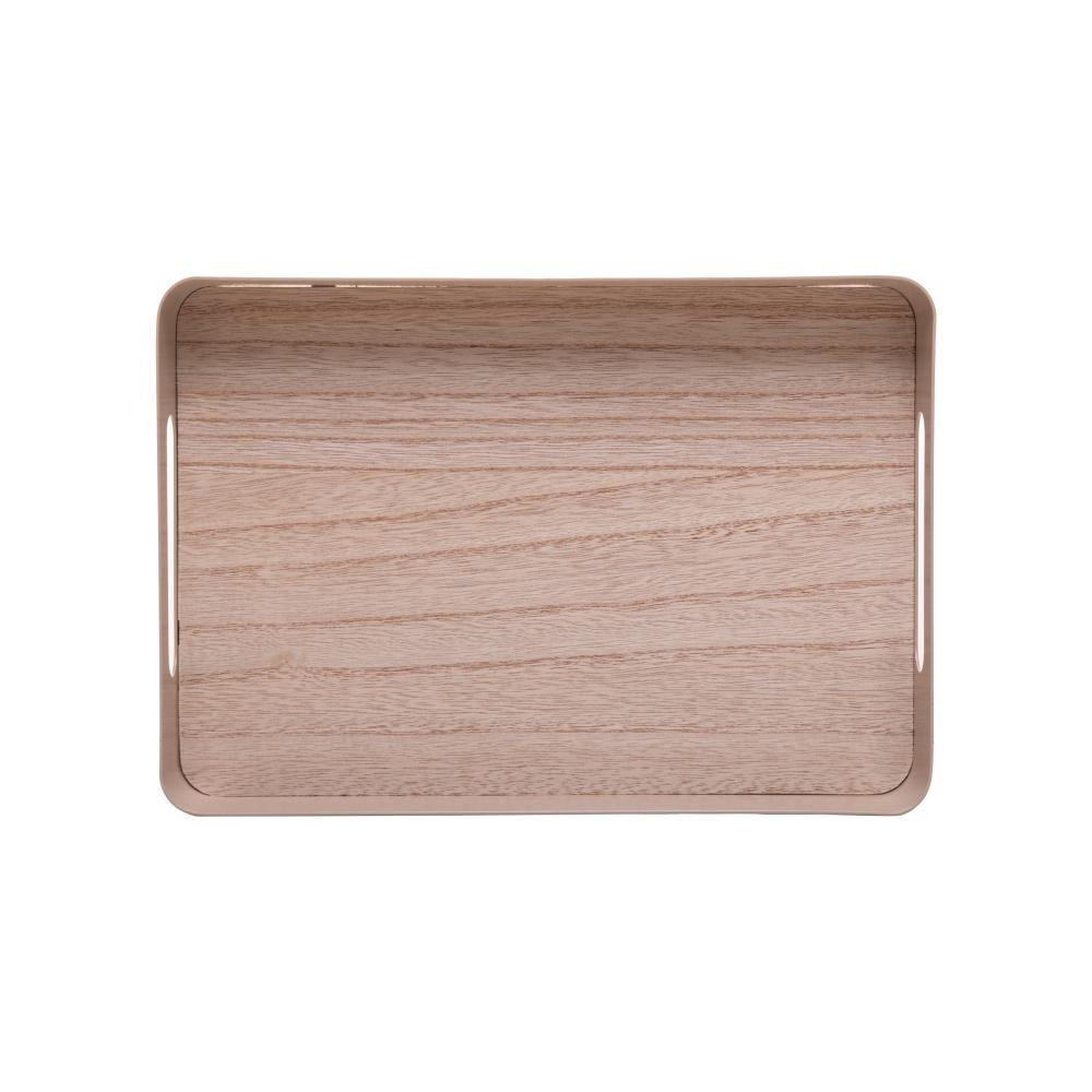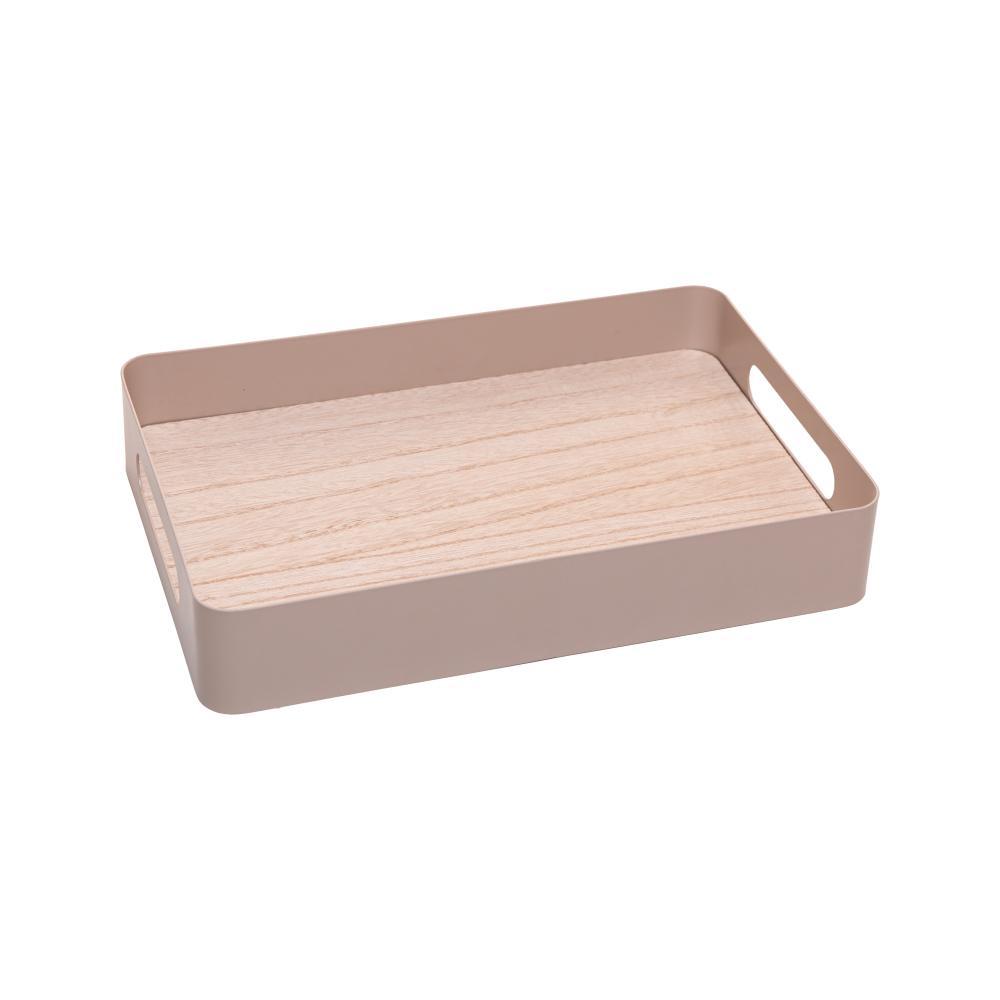 Bandeja Fundo de Madeira Virelli 25 x 15 x 5cm Bege Metal