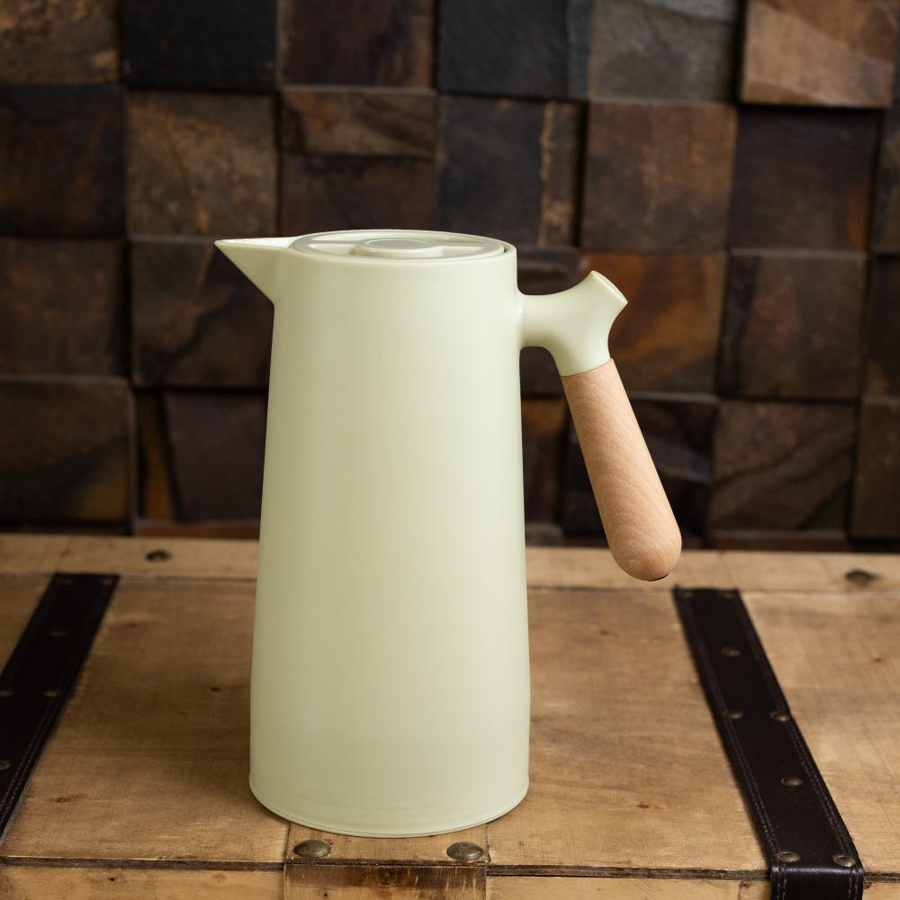Garrafa Térmica Wolff Nórdica de Plástico Verde 1LEsta Garrafa Térmica da Wolff é a escolha perfeita para quem busca estilo e elegância na hora de manter suas bebidas na temperatura ideal. Com um design inspirado no estilo nórdico, esta garrafa térmica verde menta é ideal para servir café, chá, e outras bebidas. O cabo de madeira adiciona um toque de elegância e conforto, tornando o uso diário ainda mais prazeroso.BenefíciosDesign eleganteA garrafa térmica nórdica apresenta um design elegante com acabamento em verde menta, que se destaca em qualquer ambiente. O cabo de madeira não só oferece uma pegada confortável, mas também adiciona um toque sofisticado ao visual da garrafa.VersatilidadeCom capacidade de 1 litro, esta garrafa térmica é perfeita para servir café, chá ou outras bebidas com a temperatura desejada por um bom tempo. A garrafa térmica com cabo de madeira nórdica é versátil e prática para uso diário.