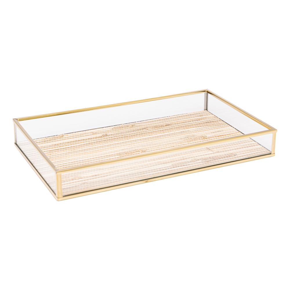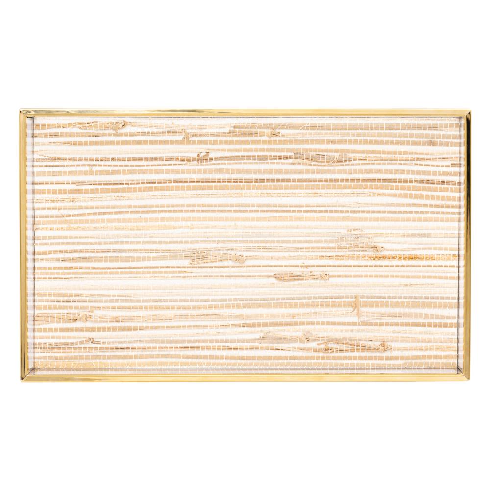 Bandeja Lyor de Metal Dourada com Palha 20cm x 30cm x 3cm