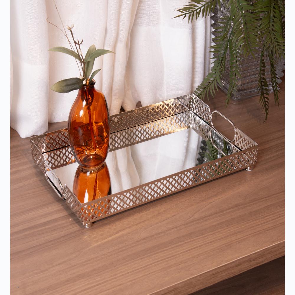 Bandeja Espelho Marbella Wolff 32cm x 20cm Prateada Metal