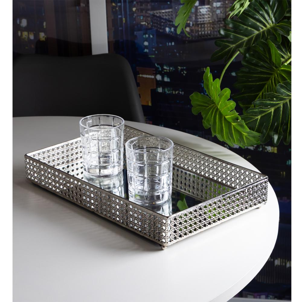 Bandeja Espelho Versalhes Wolff 38cm x 24cm Prateada Metal