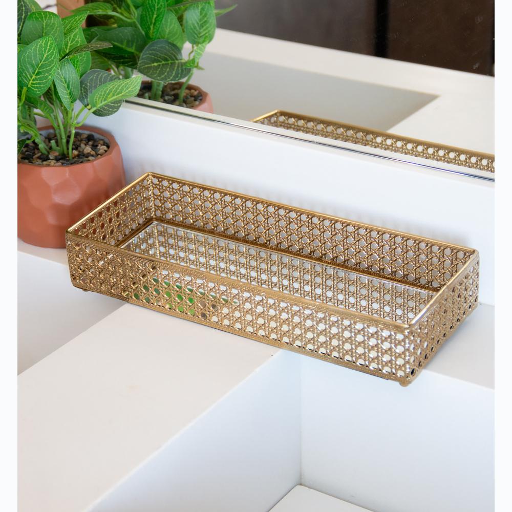 Bandeja Espelho Versalhes Wolff 32cm x 12,5cm Dourada Metal