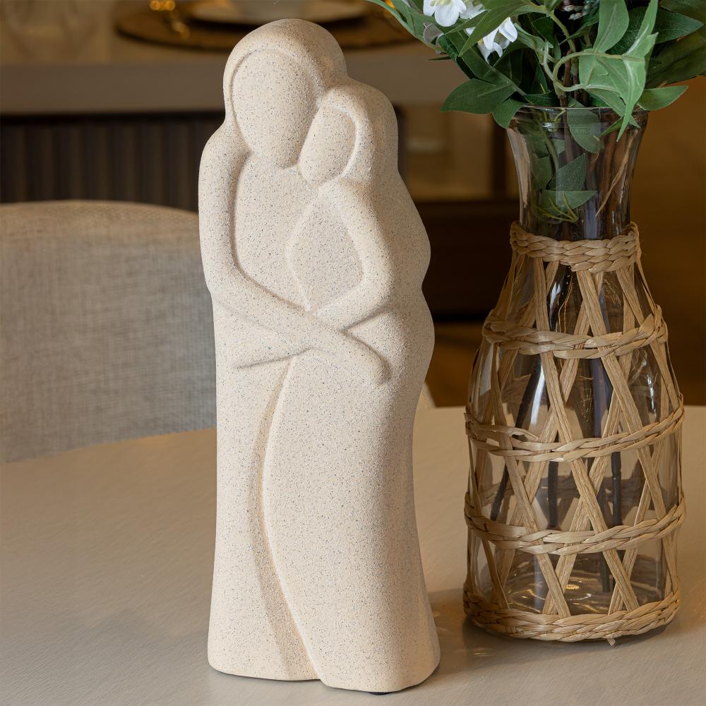 Figura Decorativa Abraço do Tempo 10cm x 6,5cm x 28cm Bege