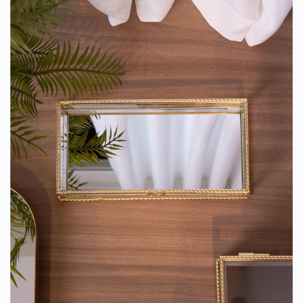 Bandeja com Espelho Mirage 10cm x 20cm x 3,5cm Dourado Metal