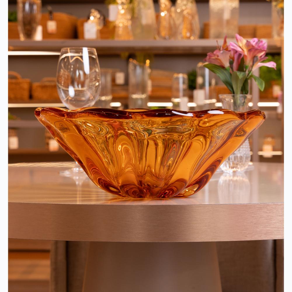 Centro de Mesa 31,5cm x 31,5cm x 13cm Âmbar Vidro WolffImpressione com sofisticação ao compor.Impressione com sofisticação ao compor.Com 31,5cm, o Centro de Mesa Italy é feito em vidro âmbar e traz design orgânico com bordas onduladas. Ideal para frutas, arranjos ou como peça decorativa principal.• Vidro de alta qualidadeBrilho elegante e acabamento impecável• Formato esculturalBorda ondulada com leveza e fluidez visual• Tamanho imponentePerfeito para ocupar o centro da mesa• Versátil na decoraçãoFunciona com ou sem composição internaPeça que valoriza a mesa e dá protagonismo à decoração.A Wolff une forma e presença em criações que marcam o ambiente.Contém: 1 Centro de MesaMedidas Produto: Altura 13,00cm x Largura 30,00cm x Comprimento 30,00cmPeso: 2,99KgLimpar com flanela