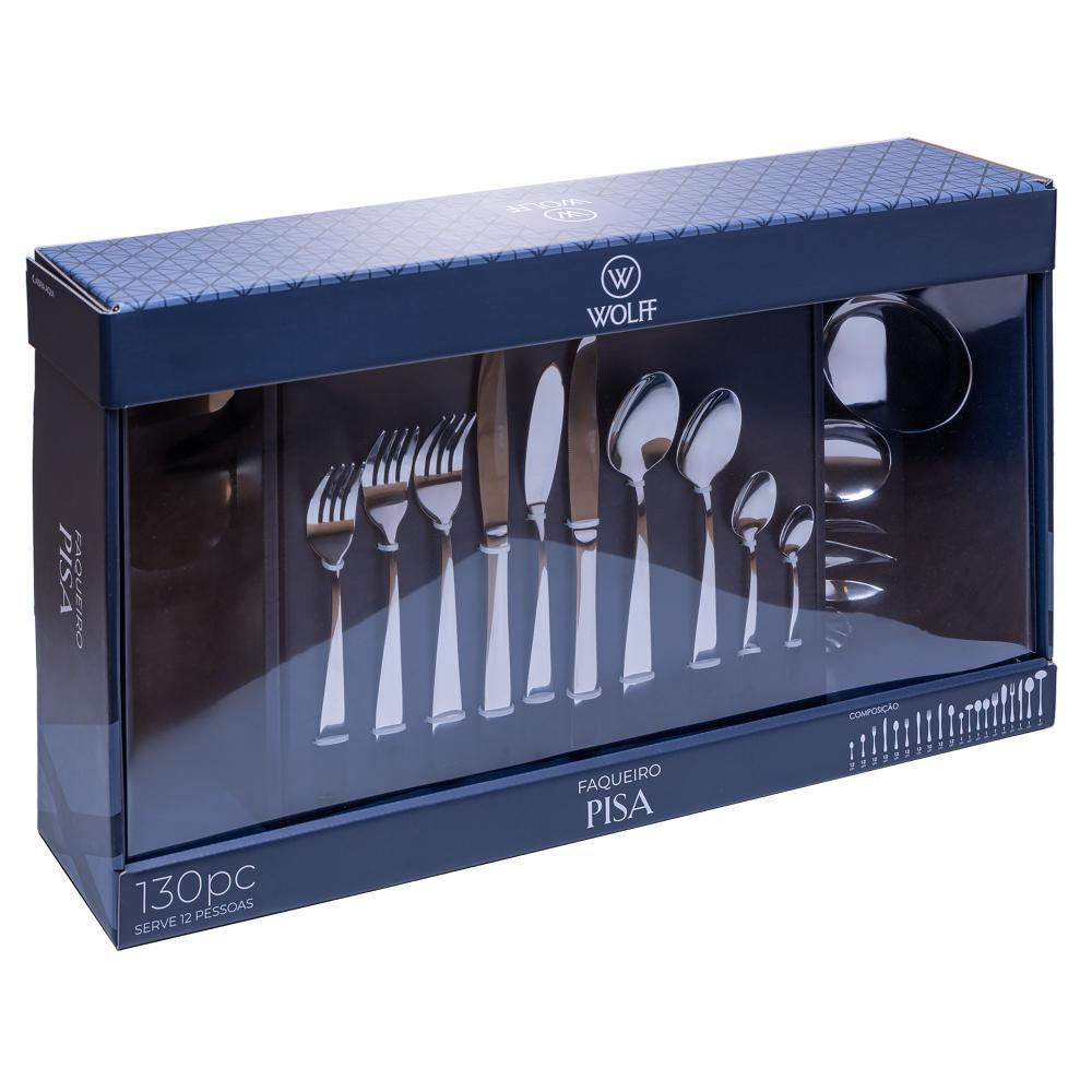 Faqueiro 130 Peças Wolff Pisa de Aço com Caixa Litografada