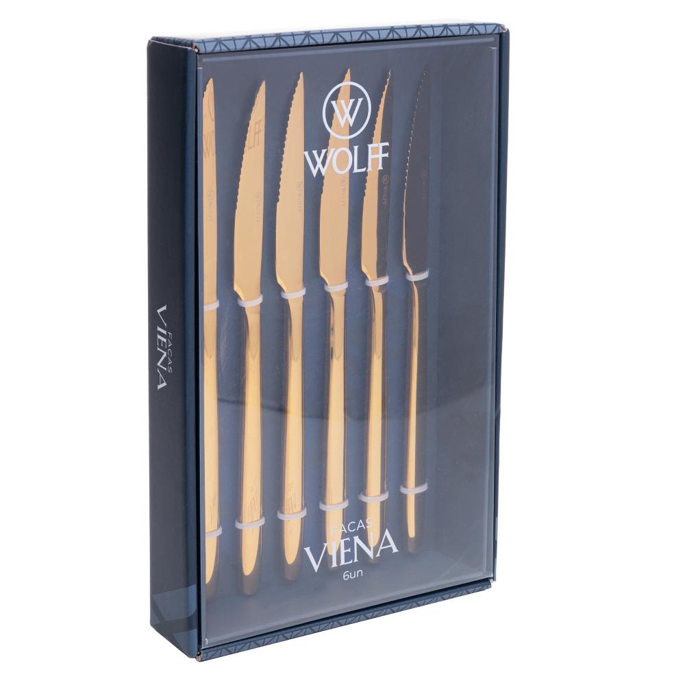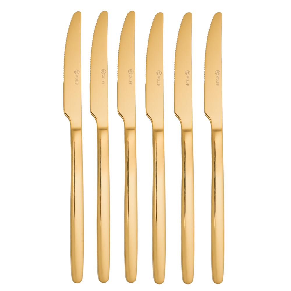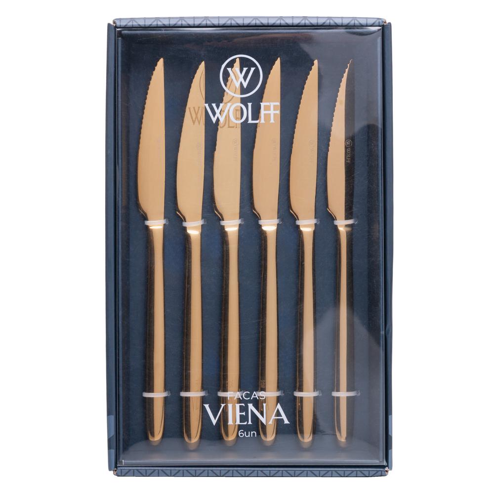 6 Facas para Churrasco Viena Dourado Aço Inox Wolff