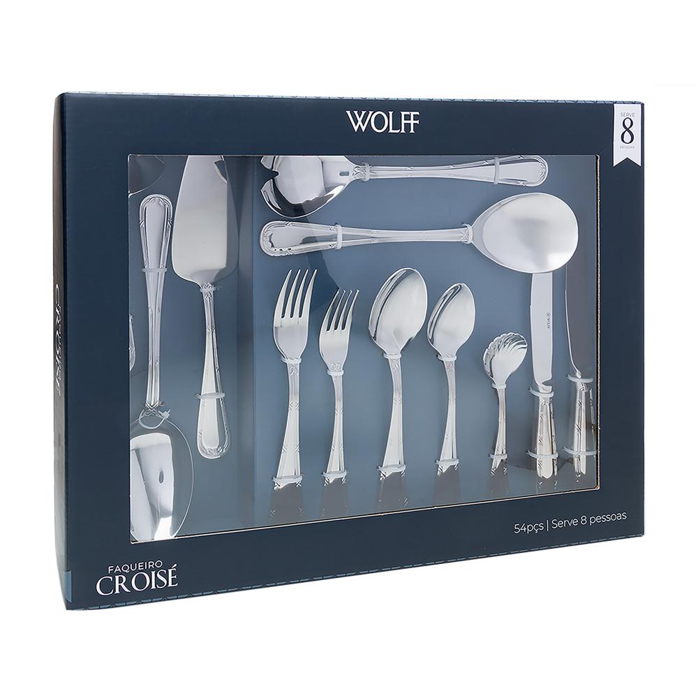 Faqueiro 54 Peças Croisé com Caixa Litografada Aço Inox