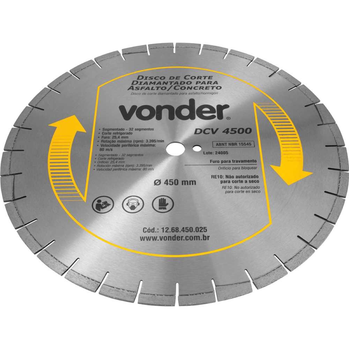 Disco Diamantado 450mm Segmentado Asfalto/Concreto Dcv4500 Vonder 32 Segmentos 3395rpm