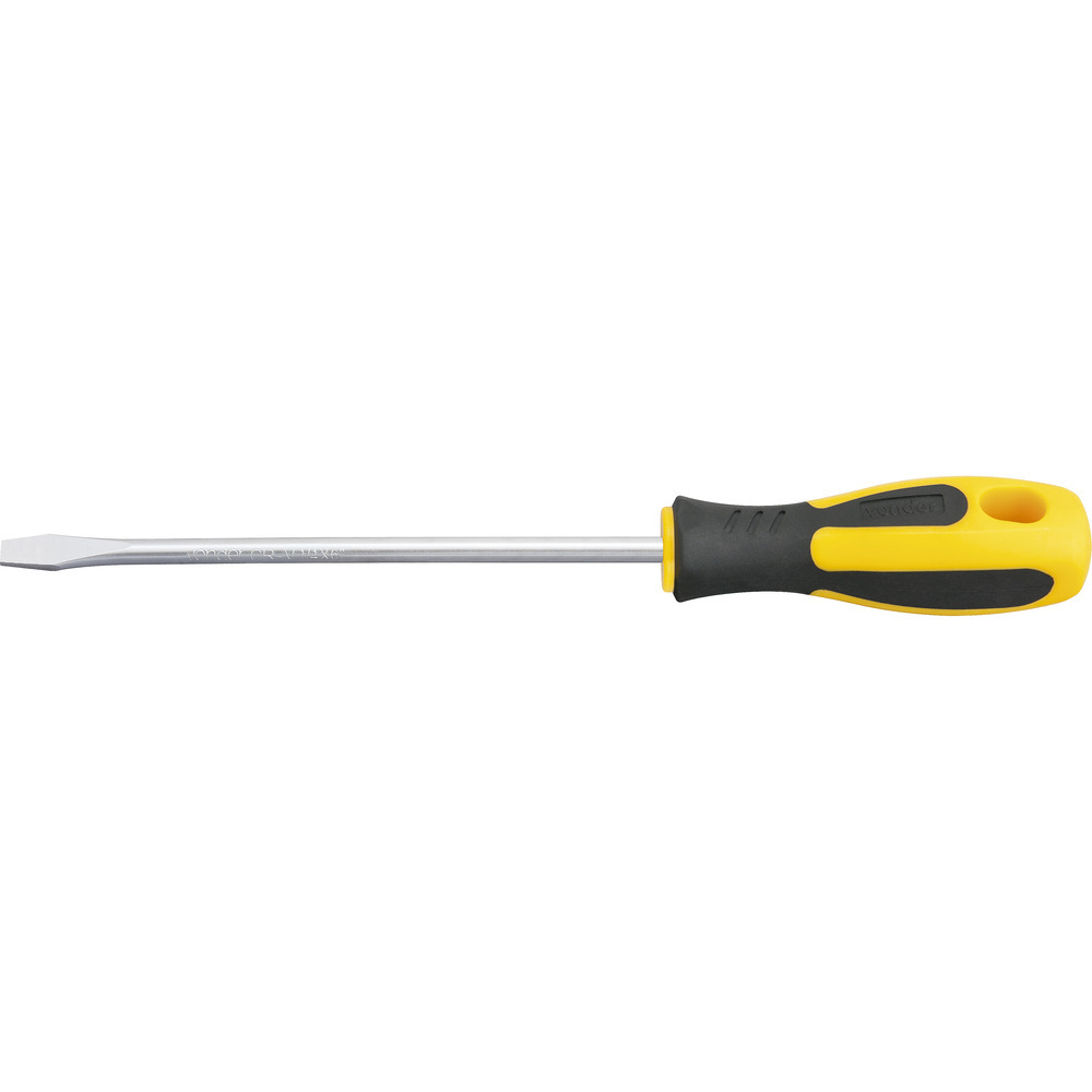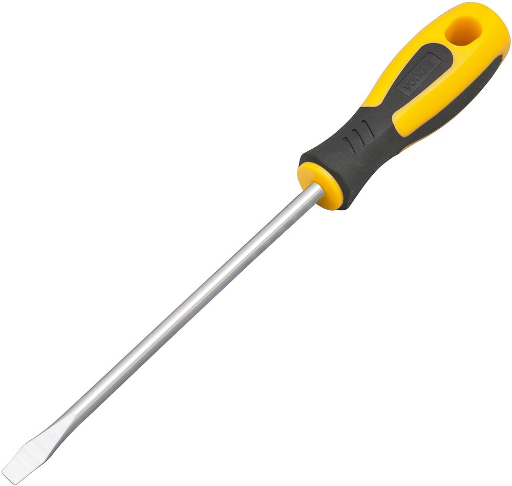 Conteúdo da embalagem1 Chave de fendaAplicações e dicas de usoIndicada para fixar e soltar parafusos com fenda simplesDestaques e diferenciaisProduzida em aço cromo vanádio, proporcionando maior resistência e durabilidade. Possui acabamento niquelado que oferece maior resistência contra oxidação/corrosão. Conta com ponta magnetizada que facilita tanto a colocação quanto a retirada de parafusos em locais de difícil acesso. Cabo anatômico em polipropileno revestido com borracha termoplástica que garante maior conforto ao operador. DETALHES TÉCNICOS Largura da ponta da chave: 1/4" - 6,3 mm Comprimento da haste da chave: 6" - 152 mm Material da haste da chave: Aço cromo vanádio Acabamento da haste da chave: Niquelado Material do cabo da chave: Polipropileno revestido com borracha termoplástica Cor do cabo da chave: Preto e amarelo