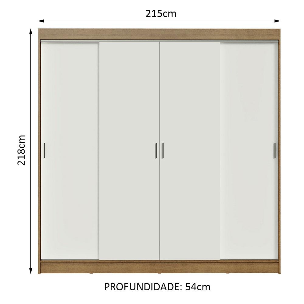 Muito espaço disponível e uma divisão interna super bem distribuída. Estes são alguns dos principais diferenciais do Guarda-Roupa Casal Austin da Madesa.O móvel conta com quatro portas de correr com deslizamento suave, trilhos em alumínio para maior resistência e quatro puxadores externos. Além disso, o sistema anti-descarrilhamento evita com que as portas saiam do trilho e transmitem mais segurança no uso diário.Internamente, são dois cabideiros de alumínio que oferecem espaço para roupas curtas e mais longas, além de diversas prateleiras, nichos e três gavetas espaçosas com corrediças metálicas. Dessa forma, cabe tudo que um casal precisa: calçados, malas, travesseiros, edredons e muito mais.O acabamento combina os tons branco e amadeirado Rustic e é feito em Pintura Poliéster ecológica com 7 camadas protetoras, que aumentam resistência do móvel.Medidas totais do guarda-roupa: 218 cm de altura x 215 cm de largura x 54 cm de profundidade.As imagens são meramente ilustrativas.Itens inclusos:- Quatro (4) portas de correr com sistema anti-descarrilhamento- Quatro (4) puxadores em PVC- Três (3) gavetas internas com corrediças metálicas- Dois (2) cabideiros em alumínioCódigo do produto: 10286EObs.: A Madesa não disponibiliza serviço de montagem. A embalagem acompanha as ferragens necessárias e o manual com todos os passos para a instalação do produto.1 – O produto é novo ou usado?R.: Todos os produtos da Madesa são novos, enviados da nossa fábrica diretamente para as casas de nossos clientes.2 – O produto vem montado? Se não, vocês realizam a montagem?R.: A Madesa não disponibiliza serviço de montagem. Todos os produtos seguem com manual de instalação e as ferragens necessárias. Alguns produtos possuem vídeo explicando o passo a passo da montagem.3 – Vocês possuem loja física? Posso retirar meu produto em mãos?R.: Não possuímos loja física, apenas loja virtual. Confira as opções de envio ao colocar o seu CEP.4 – Qual é o valor do envio? Posso pagar separadamente?R.: O valor do envio é calculado com base no peso e volume do produto, e no CEP de destino. Você pode calcular o valor e prazo de entrega no simulador.5 – A Madesa entrega em todo Brasil? Como é feita a entrega?R.: Sim, entregamos no Brasil inteiro através de transportadoras parceiras.6 – O produto acompanha Nota Fiscal?R.: Sim, todos os produtos são entregues com suas respectivas notas fiscais.7 – Os produtos possuem garantia?R.: Sim. A Madesa oferece 3 meses de garantia para defeitos de fabricação.A Madesa se dedica à sustentabilidade com várias iniciativas: temos uma usina própria para gerar energia que abastece uma de nossas fábricas. Selecionamos nossos fornecedores, priorizando aqueles que possuem um compromisso com a sustentabilidade e proteção do meio ambiente. Todo o plástico utilizado no setor produtivo é proveniente de reciclagem e as suas sobras são encaminhadas ao fornecedor que os recicla. Também investimos no desenvolvimento contínuo de nossos colaboradores e em ações educacionais que beneficiem a comunidade.