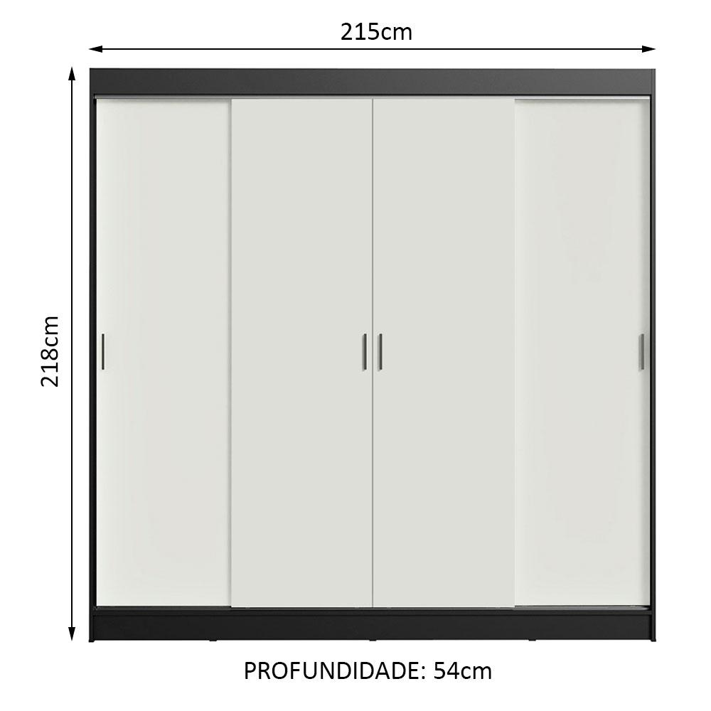 Muito espaço disponível e uma divisão interna super bem distribuída. Estes são alguns dos principais diferenciais do Guarda-Roupa Casal Austin da Madesa.O móvel conta com quatro portas de correr com deslizamento suave, trilhos em alumínio para maior resistência e quatro puxadores externos. Além disso, o sistema anti-descarrilhamento evita com que as portas saiam do trilho e transmitem mais segurança no uso diário.Internamente, são dois cabideiros de alumínio que oferecem espaço para roupas curtas e mais longas, além de diversas prateleiras, nichos e três gavetas espaçosas com corrediças metálicas. Dessa forma, cabe tudo que um casal precisa: calçados, malas, travesseiros, edredons e muito mais.O acabamento combina os tons preto e branco e é feito em Pintura Poliéster ecológica com 7 camadas protetoras, aumentando a resistência do móvel.Medidas totais do guarda-roupa: 218 cm de altura x 215 cm de largura x 54 cm de profundidade.As imagens são meramente ilustrativas.Itens inclusos:- Quatro (4) portas de correr com sistema anti-descarrilhamento- Quatro (4) puxadores em PVC- Três (3) gavetas internas com corrediças metálicas- Dois (2) cabideiros em alumínioCódigo do produto: 102877Obs.: A Madesa não disponibiliza serviço de montagem. A embalagem acompanha as ferragens necessárias e o manual com todos os passos para a instalação do produto.1 – O produto é novo ou usado?R.: Todos os produtos da Madesa são novos, enviados da nossa fábrica diretamente para as casas de nossos clientes.2 – O produto vem montado? Se não, vocês realizam a montagem?R.: A Madesa não disponibiliza serviço de montagem. Todos os produtos seguem com manual de instalação e as ferragens necessárias. Alguns produtos possuem vídeo explicando o passo a passo da montagem.3 – Vocês possuem loja física? Posso retirar meu produto em mãos?R.: Não possuímos loja física, apenas loja virtual. Confira as opções de envio ao colocar o seu CEP.4 – Qual é o valor do envio? Posso pagar separadamente?R.: O valor do envio é calculado com base no peso e volume do produto, e no CEP de destino. Você pode calcular o valor e prazo de entrega no simulador.5 – A Madesa entrega em todo Brasil? Como é feita a entrega?R.: Sim, entregamos no Brasil inteiro através de transportadoras parceiras.6 – O produto acompanha Nota Fiscal?R.: Sim, todos os produtos são entregues com suas respectivas notas fiscais.7 – Os produtos possuem garantia?R.: Sim. A Madesa oferece 3 meses de garantia para defeitos de fabricação.A Madesa se dedica à sustentabilidade com várias iniciativas: temos uma usina própria para gerar energia que abastece uma de nossas fábricas. Selecionamos nossos fornecedores, priorizando aqueles que possuem um compromisso com a sustentabilidade e proteção do meio ambiente. Todo o plástico utilizado no setor produtivo é proveniente de reciclagem e as suas sobras são encaminhadas ao fornecedor que os recicla. Também investimos no desenvolvimento contínuo de nossos colaboradores e em ações educacionais que beneficiem a comunidade.
