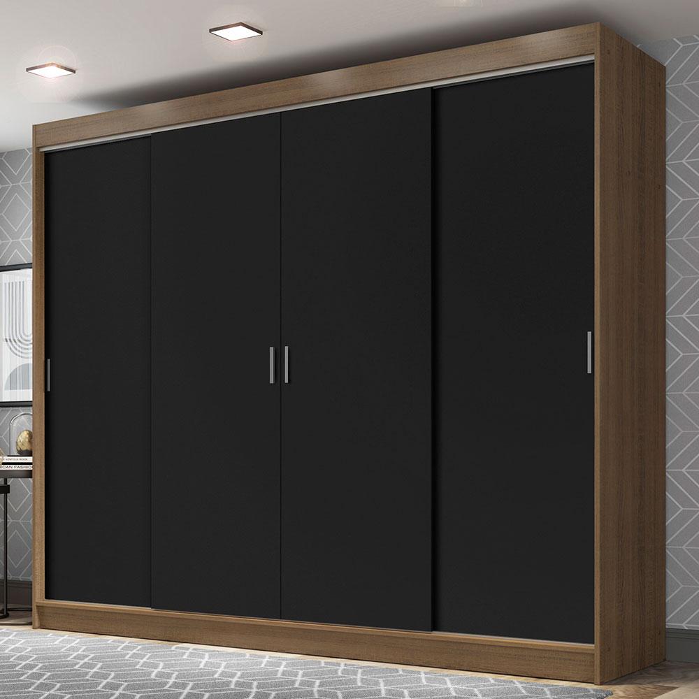 Muito espaço disponível e uma divisão interna super bem distribuída. Estes são alguns dos principais diferenciais do Guarda-Roupa Casal Austin da Madesa.O móvel conta com quatro portas de correr com deslizamento suave, trilhos em alumínio para maior resistência e quatro puxadores externos. Além disso, o sistema anti-descarrilhamento evita com que as portas saiam do trilho e transmitem mais segurança no uso diário.Internamente, são dois cabideiros de alumínio que oferecem espaço para roupas curtas e mais longas, além de diversas prateleiras, nichos e três gavetas espaçosas com corrediças metálicas. Dessa forma, cabe tudo que um casal precisa: calçados, malas, travesseiros, edredons e muito mais.O acabamento externo é em amadeirado Rustic, o interno é branco e as portas são pretas. É feito em Pintura Poliéster ecológica com 7 camadas protetoras, que aumentam resistência do móvel.Medidas totais do guarda-roupa: 218 cm de altura x 215 cm de largura x 54 cm de profundidade.As imagens são meramente ilustrativas.Itens inclusos:- Quatro (4) portas de correr com sistema anti-descarrilhamento- Quatro (4) puxadores em PVC- Três (3) gavetas internas com corrediças metálicas- Dois (2) cabideiros em alumínioCódigo do produto: 10287KObs.: A Madesa não disponibiliza serviço de montagem. A embalagem acompanha as ferragens necessárias e o manual com todos os passos para a instalação do produto.1 – O produto é novo ou usado?R.: Todos os produtos da Madesa são novos, enviados da nossa fábrica diretamente para as casas de nossos clientes.2 – O produto vem montado? Se não, vocês realizam a montagem?R.: A Madesa não disponibiliza serviço de montagem. Todos os produtos seguem com manual de instalação e as ferragens necessárias. Alguns produtos possuem vídeo explicando o passo a passo da montagem.3 – Vocês possuem loja física? Posso retirar meu produto em mãos?R.: Não possuímos loja física, apenas loja virtual. Confira as opções de envio ao colocar o seu CEP.4 – Qual é o valor do envio? Posso pagar separadamente?R.: O valor do envio é calculado com base no peso e volume do produto, e no CEP de destino. Você pode calcular o valor e prazo de entrega no simulador.5 – A Madesa entrega em todo Brasil? Como é feita a entrega?R.: Sim, entregamos no Brasil inteiro através de transportadoras parceiras.6 – O produto acompanha Nota Fiscal?R.: Sim, todos os produtos são entregues com suas respectivas notas fiscais.7 – Os produtos possuem garantia?R.: Sim. A Madesa oferece 3 meses de garantia para defeitos de fabricação.A Madesa se dedica à sustentabilidade com várias iniciativas: temos uma usina própria para gerar energia que abastece uma de nossas fábricas. Selecionamos nossos fornecedores, priorizando aqueles que possuem um compromisso com a sustentabilidade e proteção do meio ambiente. Todo o plástico utilizado no setor produtivo é proveniente de reciclagem e as suas sobras são encaminhadas ao fornecedor que os recicla. Também investimos no desenvolvimento contínuo de nossos colaboradores e em ações educacionais que beneficiem a comunidade.
